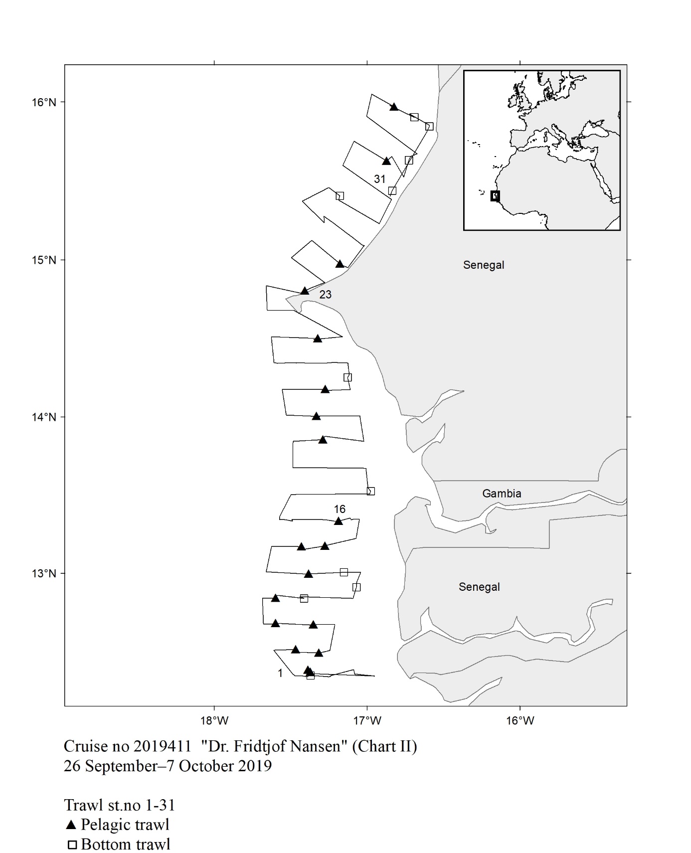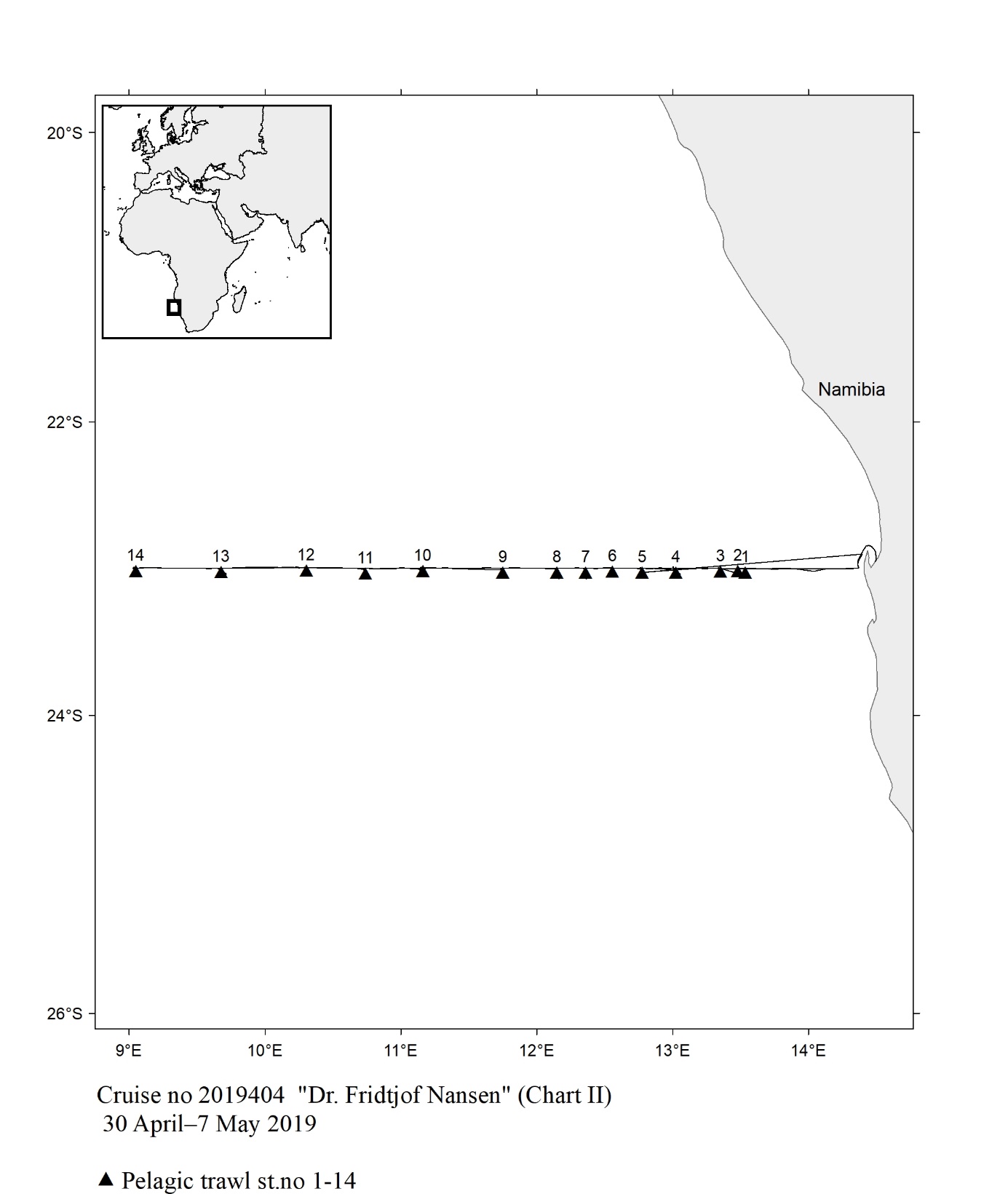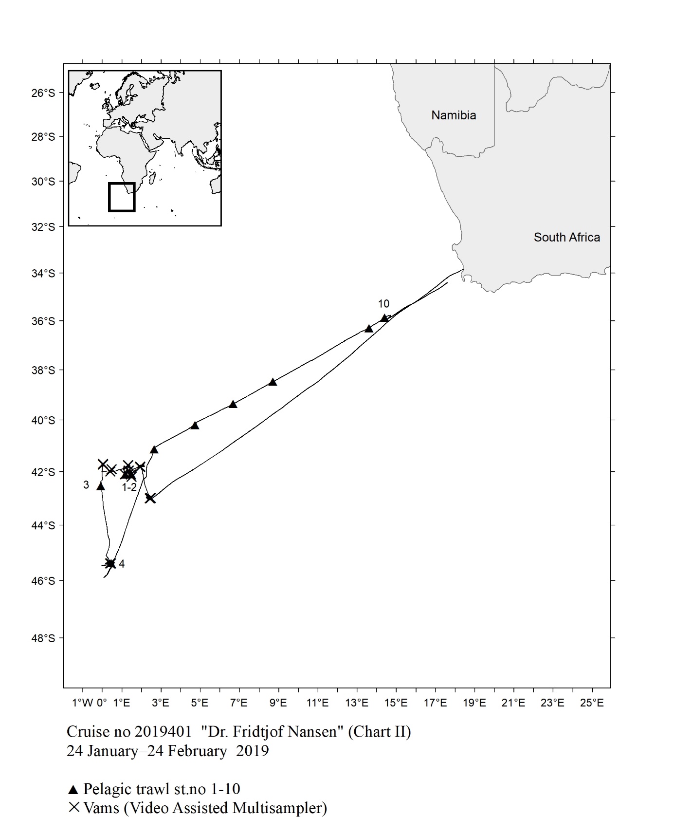 | 2019809 | 4.3.-17.3. | “ Vendla” | Acoustic trawl survey on Capelin spawning stock. Methodological survey using a stratified survey design aiming to measure the abundance of Capelin during the spawning season. | Norwegian Sea | - | 1-22 | 127 |