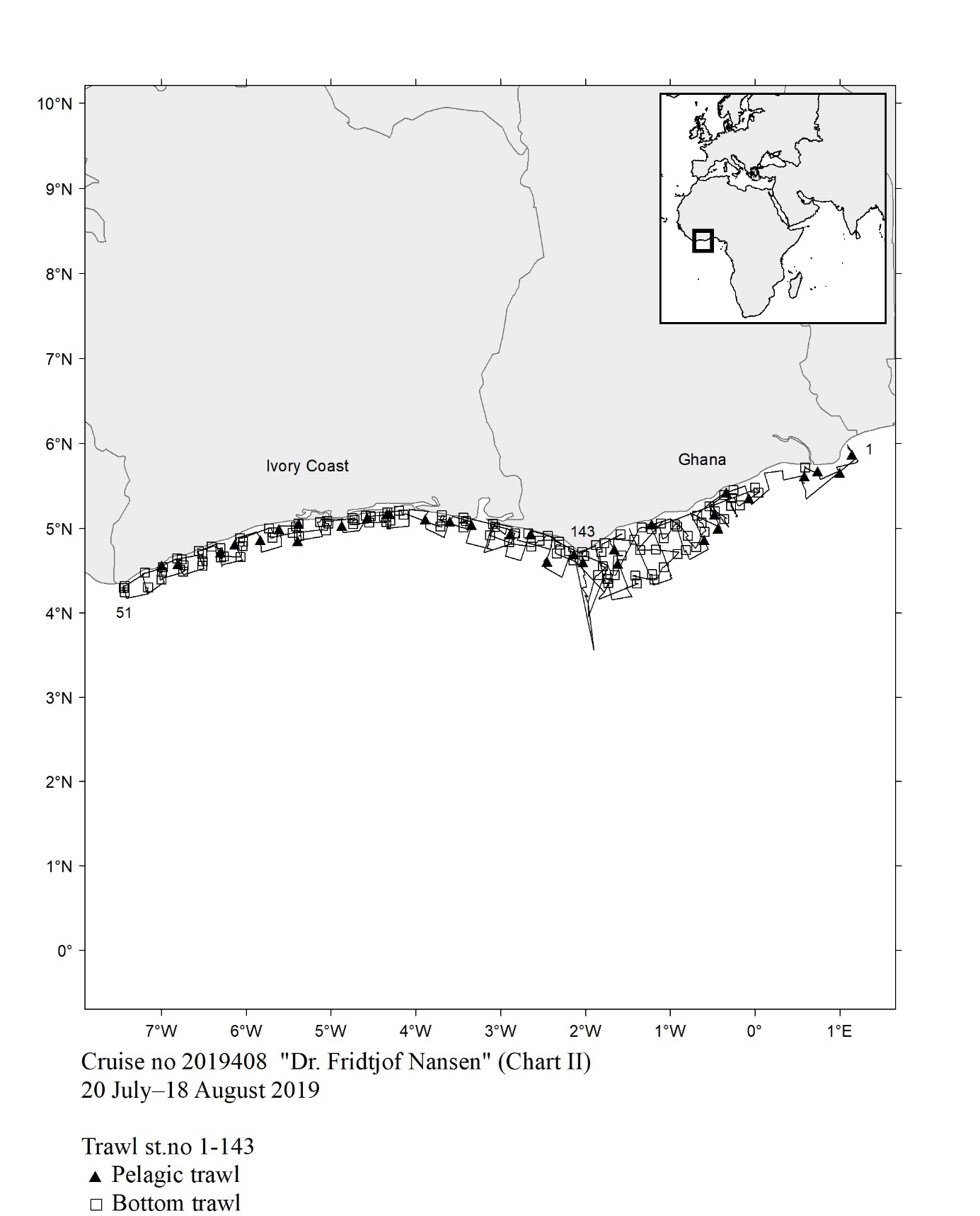 | 2019873 | 21.10.-1.11. | “ Eir” | Experimental fishery in shallow water, using trammel nets and fyke nets. Main objective is to add data to time-series with focus on coastal cod abundance. | North Sea Coastal areas | - | - | No chart |