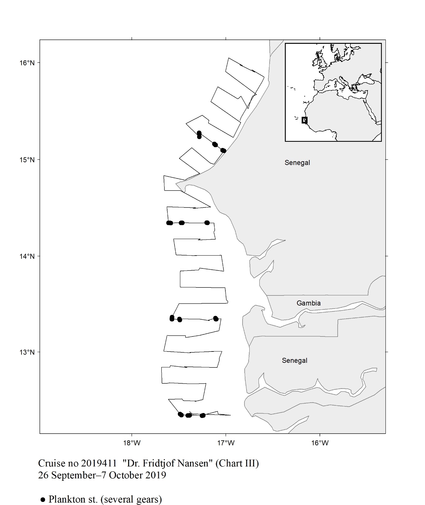 | 2019847 | 23.4.-13.5. | “ Eros” | Measuring the abundance, distribution and age composition of lesser sandeel ∀ Dredge sampling for burrowed sandeels ∀ Bottom trawls ∀ Pelagic trawls ∀ Echo sounder sampling ∀ Zooplankton sampling ∀ Mapping of hydrographical conditions | North Sea | 11-35 | 15-48 | 144-145 |
