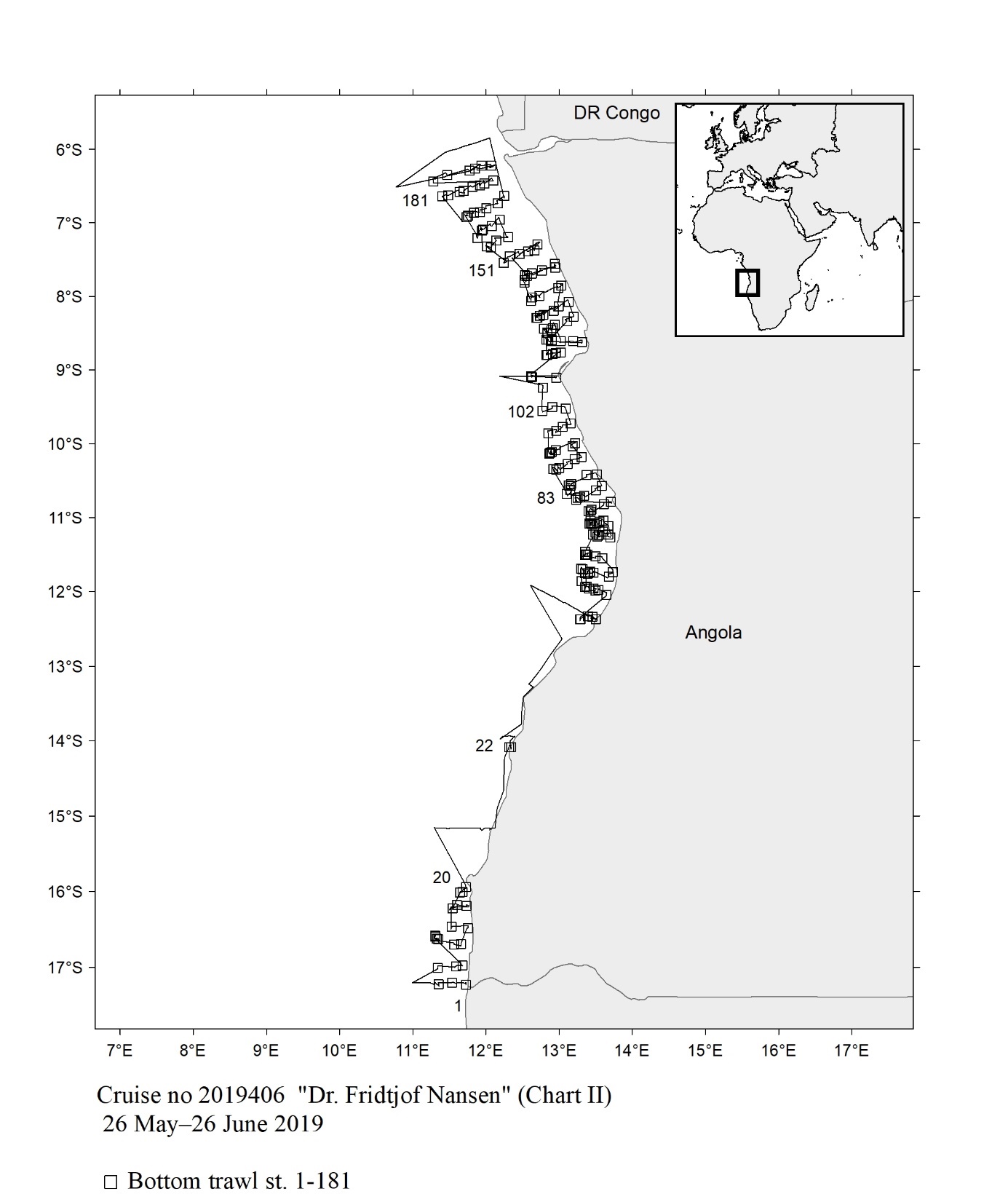 | 2019824 | 18.3.-10.4. | «Katla» | ∀ Compare the unfished northern shrimp (Pandalus borealis) stocks in the two fjords Porsanger and Tana in North-Norway (closed for trawling since the beginning of the 1970s) with the shrimp stock in a commercially exploited reference fjord (Kvænangen) with regards to density, spatial distribution, size and stage distribution, as well as genetic stock composition. ∀ Collect data on all demersal fish stocks (density, spatial distribution, length, age, stomach content) in the Tana and Porsanger fjords as well as in the reference fjord, Kvænangen, for use in an ECOPATH model. ∀ Collect bottom temperature in all three fjords by means of temperature loggers on the trawl. | Norwegian Sea | - | 1-82 | 131 |