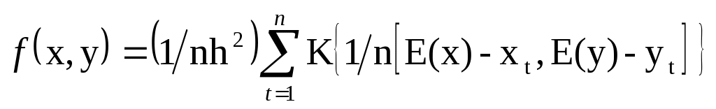 Her er n antall observasjoner, xt og yt er koordinater for observasjon t, E(x) og E(y) er forventet gjennomsnitt, beregnet som et aritmetisk gjennomsnitt av alle observasjonene. K er en symmetrisk bivariat kernelfunksjon og h er ‘glatte’ som beskriver bredden på funksjonen. Her brukte vi glatte-parameter tilsvarende: der σ er standardavviket i datasettet og n er antall observasjoner. Denne metoden er tidligere brukt på å beregne hjemmeområde på individnivå hos hummer og torsk (Espeland m.fl 2007, Moland m.fl 2011) og på torsk på populasjonsnivå (Espeland m.fl. 2008).