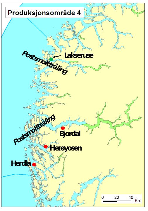 En ruse til fangst av utvandrende postsmolt laks ble i uke 20-21 plassert ytterst i Nordfjord like ved Måløy (figur 5). Rusen fanget kun noe laks, men en god del sjøørret. Lusedata fra begge artene presenteres i denne rapporten.
