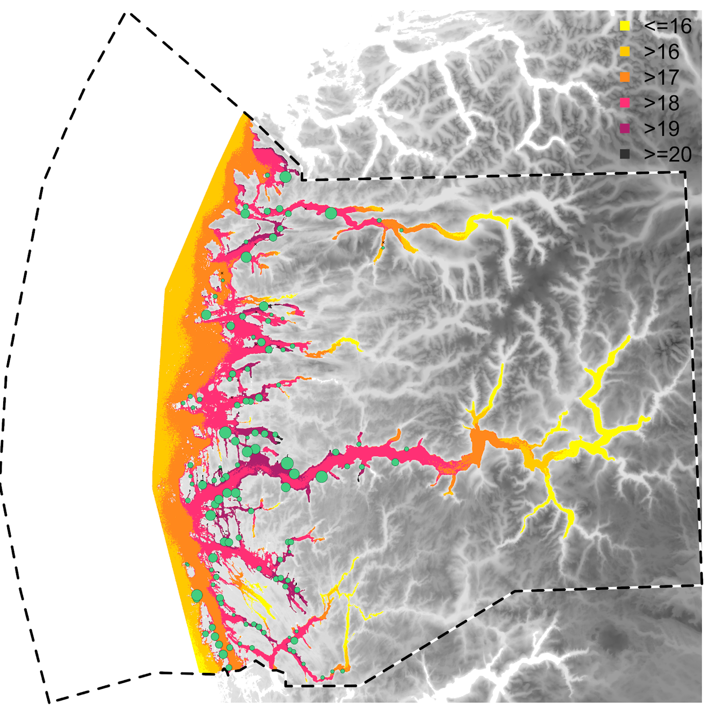 Huserbråten Mats, Bjørn Ådlandsvik, Øivind Bergh, Søren Grove, Ørjan Karlsen, Geir Lasse Taranger, Lars Qviller, Katherine Rose Dean, Britt Bang Jensen og Ingrid Askeland Johnsen (2020) Endret lokalitetsstruktur i produksjonsområde 3. Rapport fra Havforskningen 2020-12