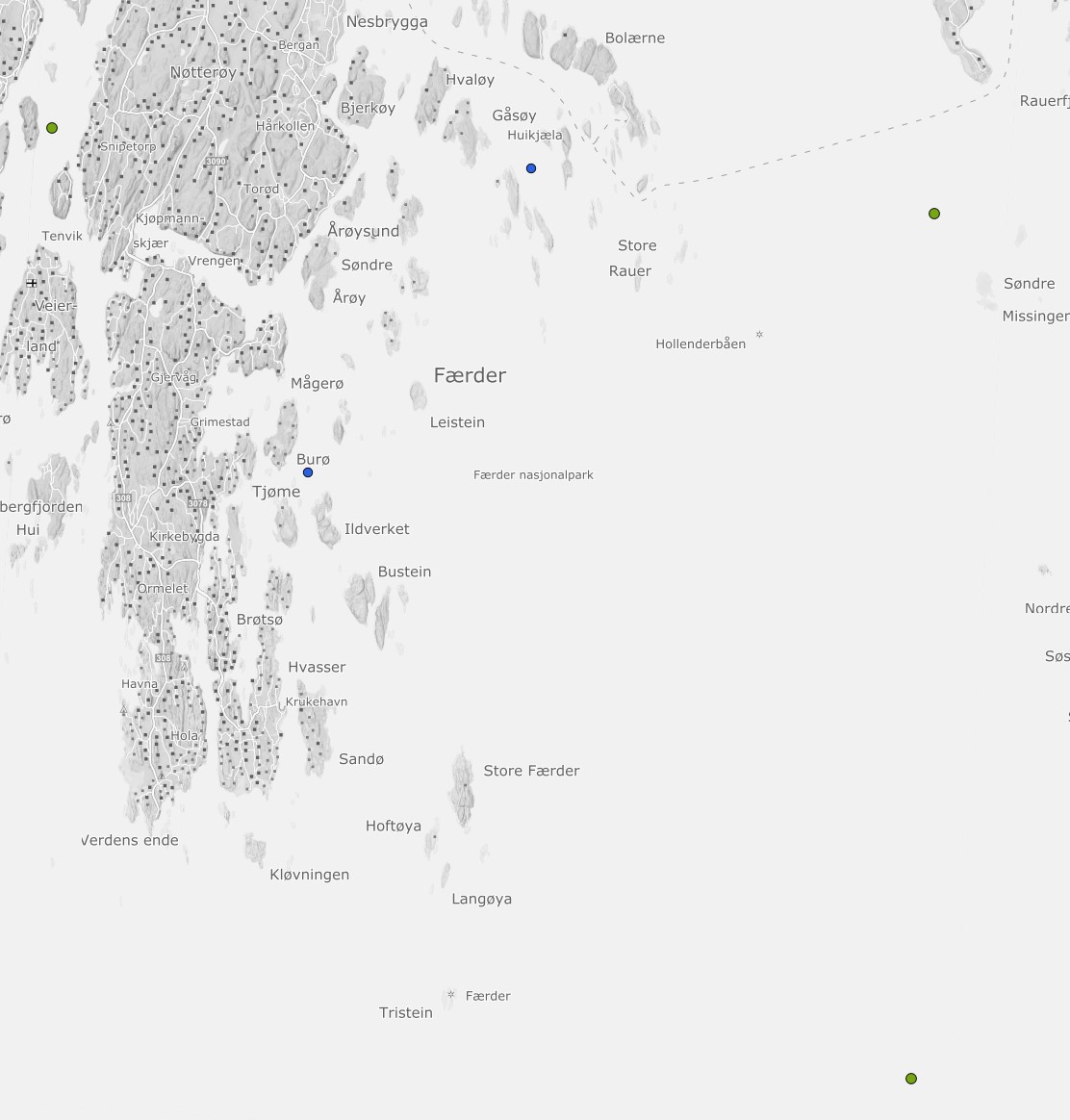 I «Krafttak for kysttorsken»-prosjektet og andre prosjekter Havforskningsinstituttet har gjennomført med aktiviteter i Bolærne-området har forekomst og tilstand for disse naturtypene vært undersøkt. Det har også vært behov for å utvikle metoder for å kvantifisere juvenil fisk. Både små teiner, videorigger, droner og akustikk (bunnstående ekkolodd) har vært testet for å kartlegge habitater som er oppvekstområder for fisk, deriblant kysttorsk. Habitater i området fra Tønsberg til Bolærne, som representer en gradient i bølgeeksponering og avrenning fra land har blitt overvåket 2018-2020. Undersøkelsene har vært gjort på stasjoner som ligger i transekter på stasjoner på bløt- og hardbunn fra indre kyst ved Tønsberg til ytre deler av Bolærne (Fig 2.3.4.1).