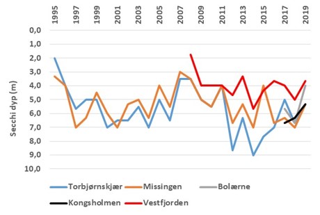 I denne rapporten har vi derfor valgt å legge hovedvekt på beskrivelser som er relevante for fiskeriforvaltningen. I tillegg presenterer vi registeringer av miljøparametere i prosjektet med særlig relevans for vår vurdering av mulighetene for restaurering av økosystemet. Men for at leseren skal kunne danne seg et helhetsbilde av forholdene i fjorden har vi inkludert det brede og helhetlige kunnskapsgrunnlaget bak «Forslag til helhetlig plan for Oslofjorden» i vår oppsummering av hovedelementene som påvirker situasjonen i fjorden.