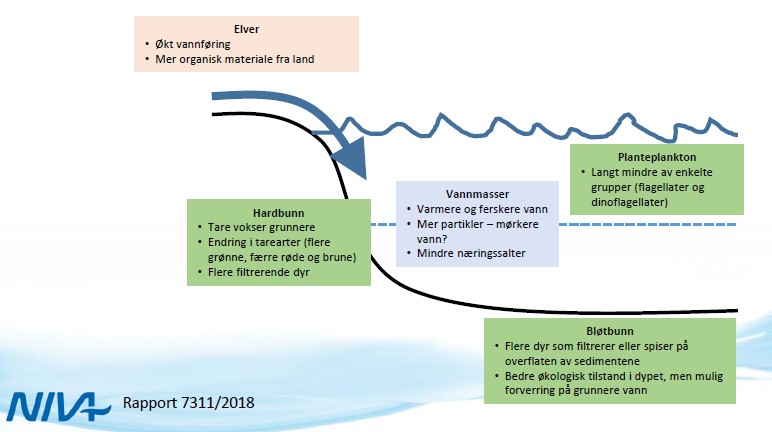 Frigstad, H., Andersen G.S., Trannum, H.C., Naustvoll, L.J., Kaste, Ø., Hjermann, D.Ø. 2018. Synthesis of climate relevant results from selected monitoring programs in the coastal zone. Part 2: Quantitative analyses, NIVA rapport. ISBN 978-82-577-7046-4. No 7311 (54 sider)