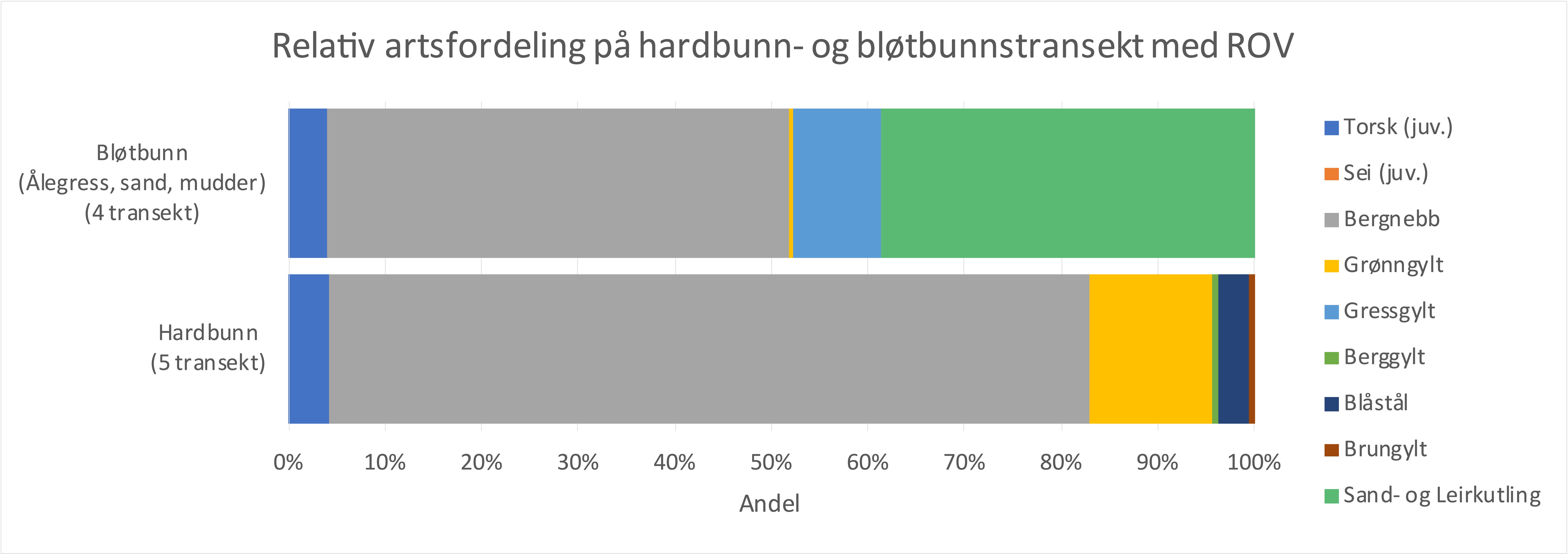 Datainnsamling for kombinert inventering av fiskesamfunnet og detaljert kartlegging av torskebestandene i begge nasjonalparker ble gjennomført i form av tokt i mai 2017-2019. Ruser ble benyttet på grunt vann (1–10 m) og fisketeiner/ havteiner ble brukt på dypere vann (10–30 m). Til sammen gjennomførte Havforskningsinstituttet henholdsvis 929 og 108 ruse- og teinedøgn i begge nasjonalparker og tilgrensende områder. Agnet stereovideo (se under) ble innført som ny observasjonsmetode for kartlegging av fiskesamfunnet, og et eget videotokt ble gjennomført i august 2017-2019. Det ble totalt registrert 9733 individuelle fisk fordelt på 37 arter fra 19 familier i prosjektperioden. Fiskesamfunnet på grunne habitater undersøkt med åleruser var dominert av et utvalg leppefisker (bergnebb og grønngylt) og små, stasjonære arter av ikke-kommersiell betydning. På dypere habitat undersøkt med teiner utgjorde flyndrefamilien 87% av totalfangst. Stereo-video registrerte i tillegg til bergnebb innslag av mobile kommersielle rovfisk (torsk, sei og hvitting). Arter med høyest relativ forekomst og gjennomgående høy tetthet var bergnebb og grønngylt for ruse, sandflyndre for teine og bergnebb og torsk for stereo-video. Temporale forskjeller i sammensetning av fiskesamfunnet i perioden 2017-2019 kunne ikke påvises. Rapport fra prosjektets inventering av fiskesamfunnet, basert på alle benyttede metoder, foreligger i form av en masteroppgave (Skjæveland 2020) og en doktorgradsavhandling (Synnes 2020) ved Universitetet i Agder.