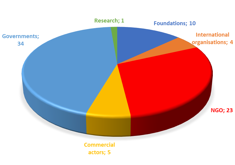 Those who made commitments – the pledgers – were categorised into six groups: Governments, Commercial actors, Foundations, NGOs, International organisations and Research (Appendix 2).