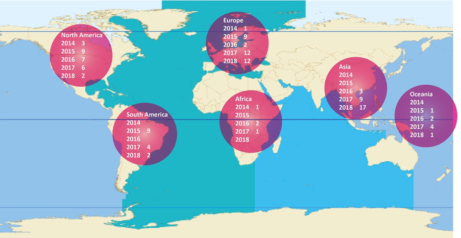 A very small number of commitments were made at the first conference in 2014, and the most were pledged in 2017 (Table 1). For the three first conferences, self-reports on impact are given for all the commitments, but for the 2017 and 2018 conferences, impact information lacks from four commitments in each of the years (Table 1).