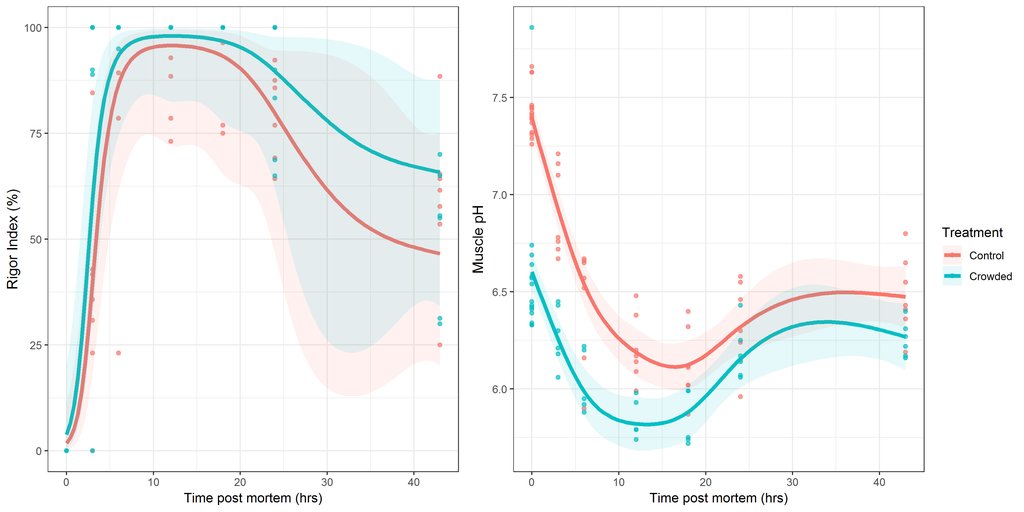 Videre var forskningsgruppen interessert i å undersøke om den fysiologiske stressreaksjonen de observerte kunne påvirke kvaliteten på fiskekjøttet. Det første de så på, var hvordan utviklingen av rigor mortis ble påvirket.