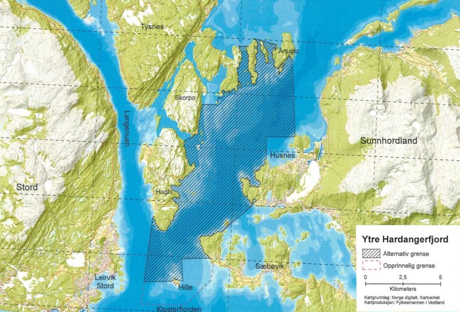 Bukkarevet lies south of Bukkaskjeret, on the threshold of Hardangerfjorden. The industrial town of Leirvik on the island of Stord lies five kilometres to its west.