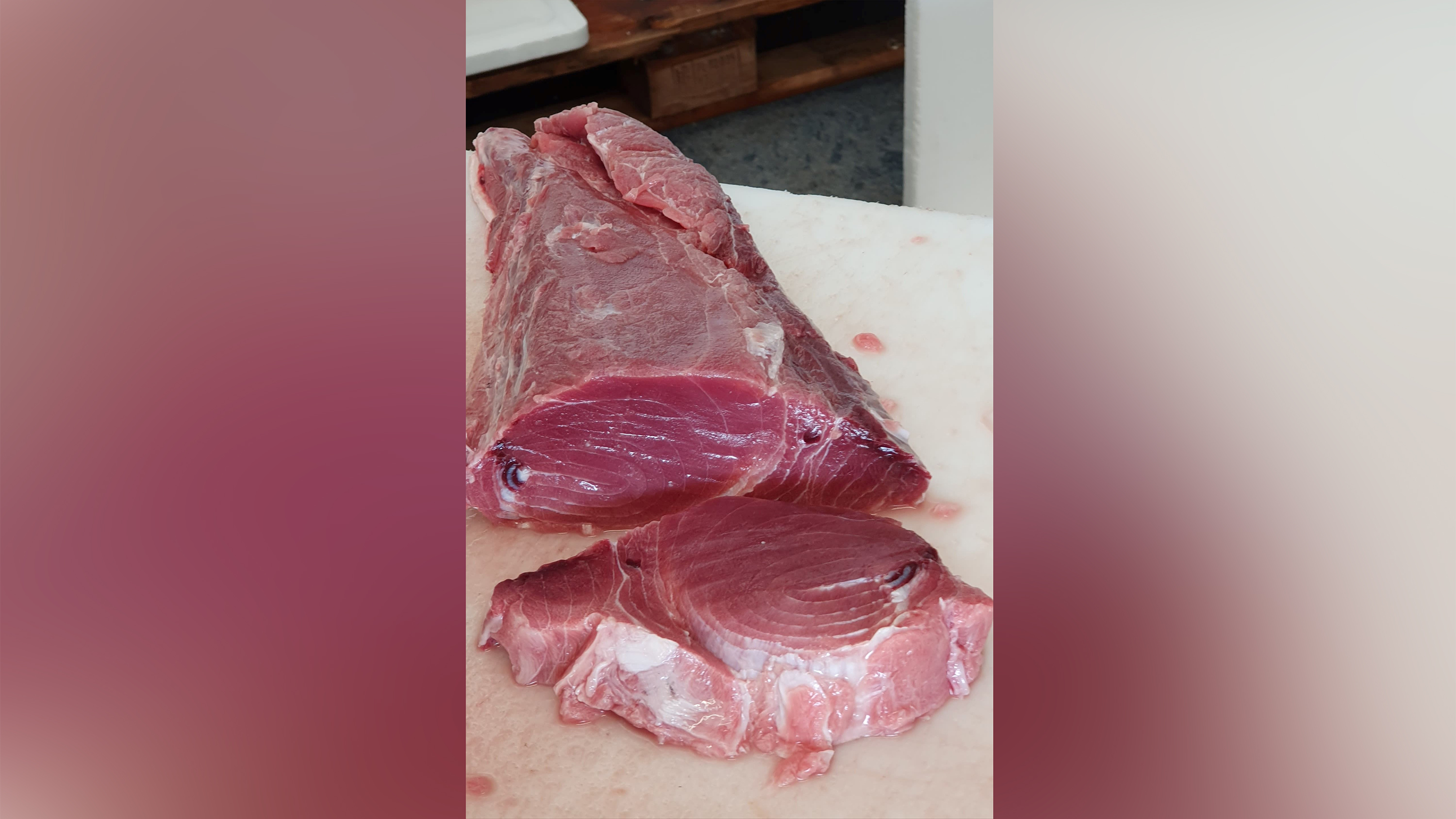 The tuna was caught on a so-called spreader bar – a school of rubber squid pulled behind the boat. One stands out as a stinger.