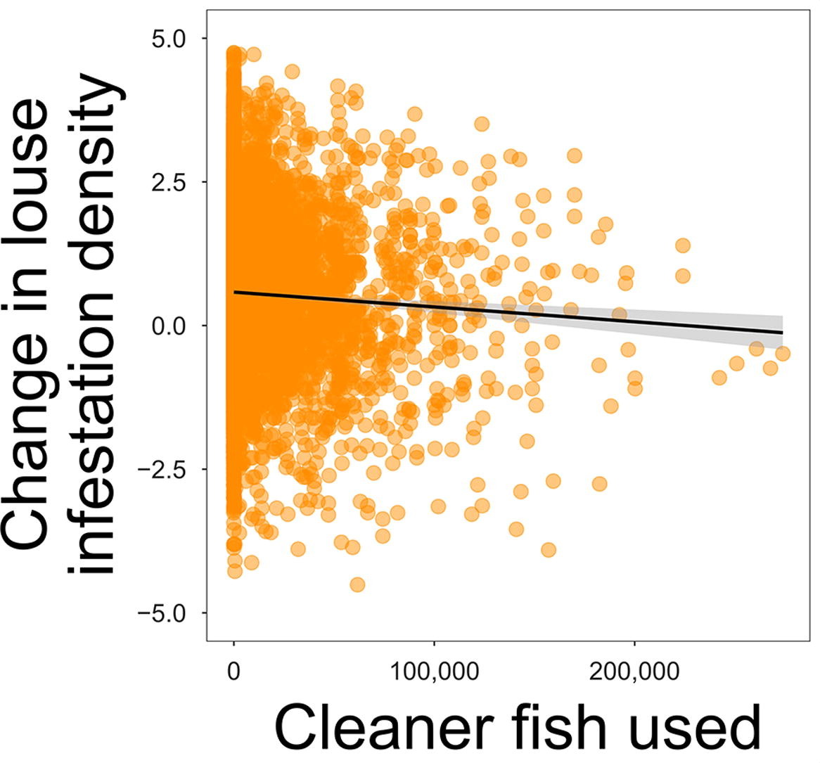 They performed two analyses: one to compare louse levels and cleaner fish numbers at different farms, and another one to study the relationship between deploying cleaner fish, louse levels and delousing at each individual farm.
