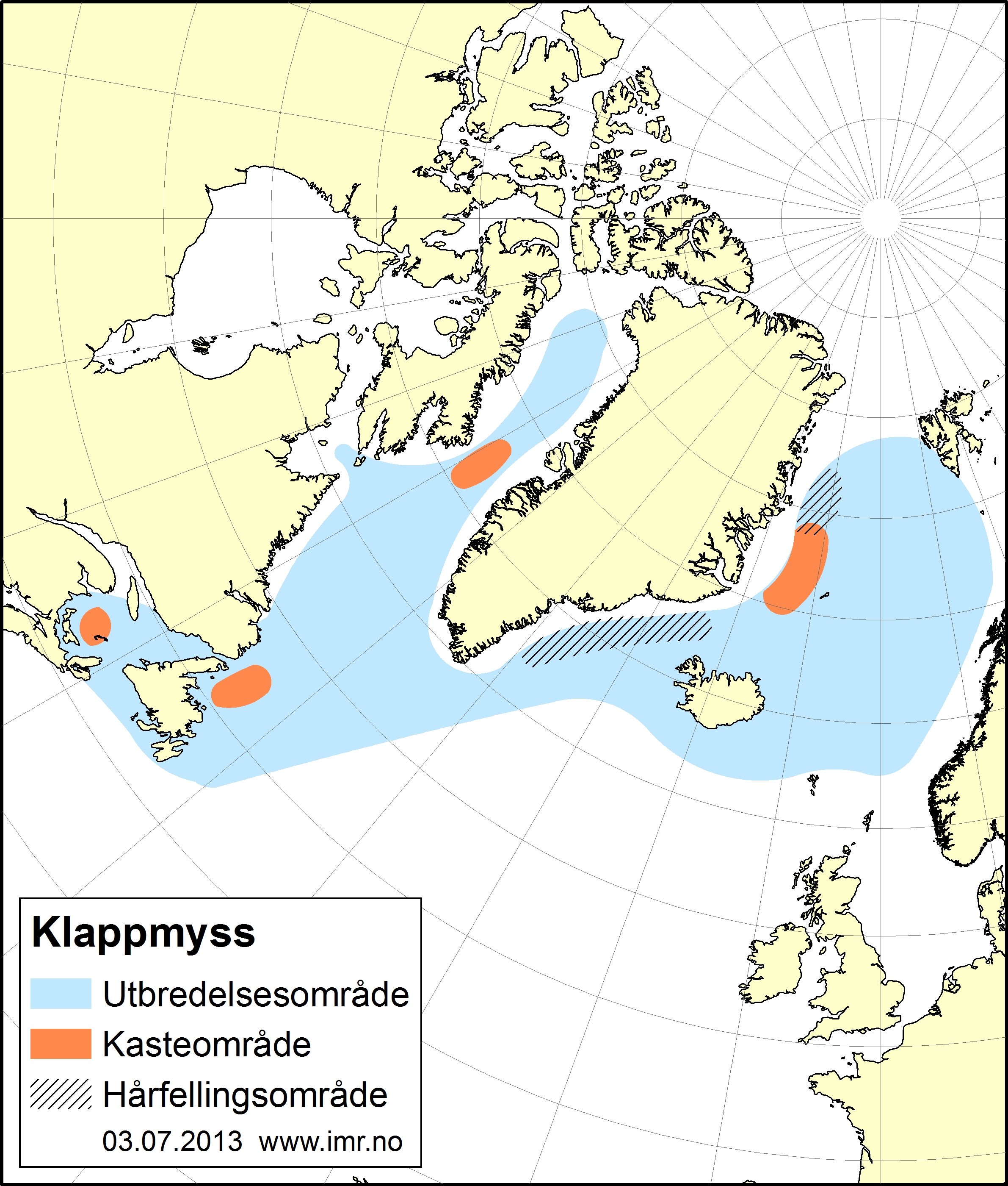 The breeding range of the Greenland Sea stock lies between Jan Mayen and Greenland. During the breeding period, females gather in loosely organized breeding patches to nurse their pups on the ice, while males compete amongst each-other for the right to accompany a female and her pup on the ice.