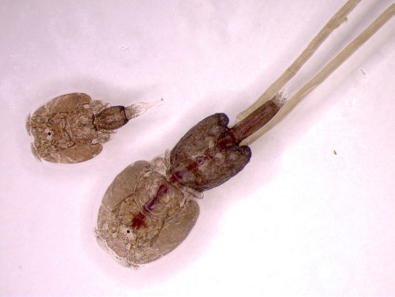 På lab. 1 har vi 60–70 laks gående hele tiden. Denne fisken er vert for de tre stammene vi har fast av lakselus ved Havforskningsinstituttet. Produksjonen vår gjør at forskerne har lett tilgang til lakselus året gjennom slik at de kan brukes i forsøk med fisk og til videre studier av lakselus (anatomi, biologi, genetikk, immunologi o.a.).