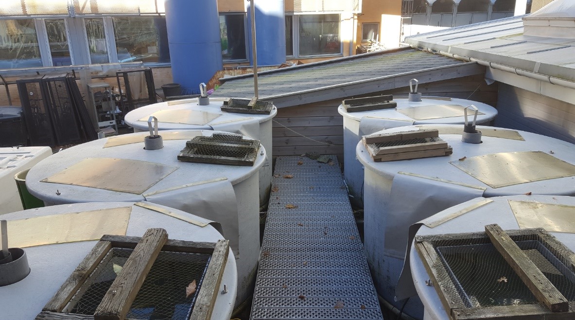 På bakplassen står det seks kar på ca. 1,5 kubikk. Karene blir i all hovedsak brukt til luseaktivitet og til oppbevaring av fisk som skal inn på lab. 1 og lab. 2.