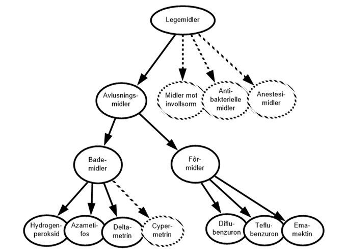 Lakselus tilhører dyregruppen krepsdyr, og medikamenter som dreper lakselusen kan også påvirke andre krepsdyrarter og også andre arter. Andre arter enn lakselus er gitt en generell betegnelse som «non-target-arter», og omfatter arter som lever fritt i vannmassene, på bunnen og i strandsonen. Det er forskjell i måten bademidler og fôrmidler påvirker non-target-arter. Bademidler gir kortvarig effekt, mens fôrmidler vil kunne påvirke non-target-arter over en lengre tidsperiode. Hvilke avlusningsmiddel som brukes, vil også ha stor betydning, siden de ulike avlusningsmidlene har varierende giftighet og effekt på ulike arter og livsstadier.