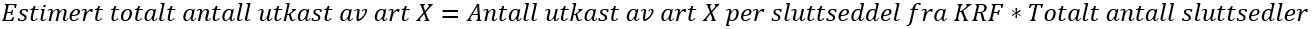 : estimert antall utkast av torsk * totalt antall sluttsedler med torsk
