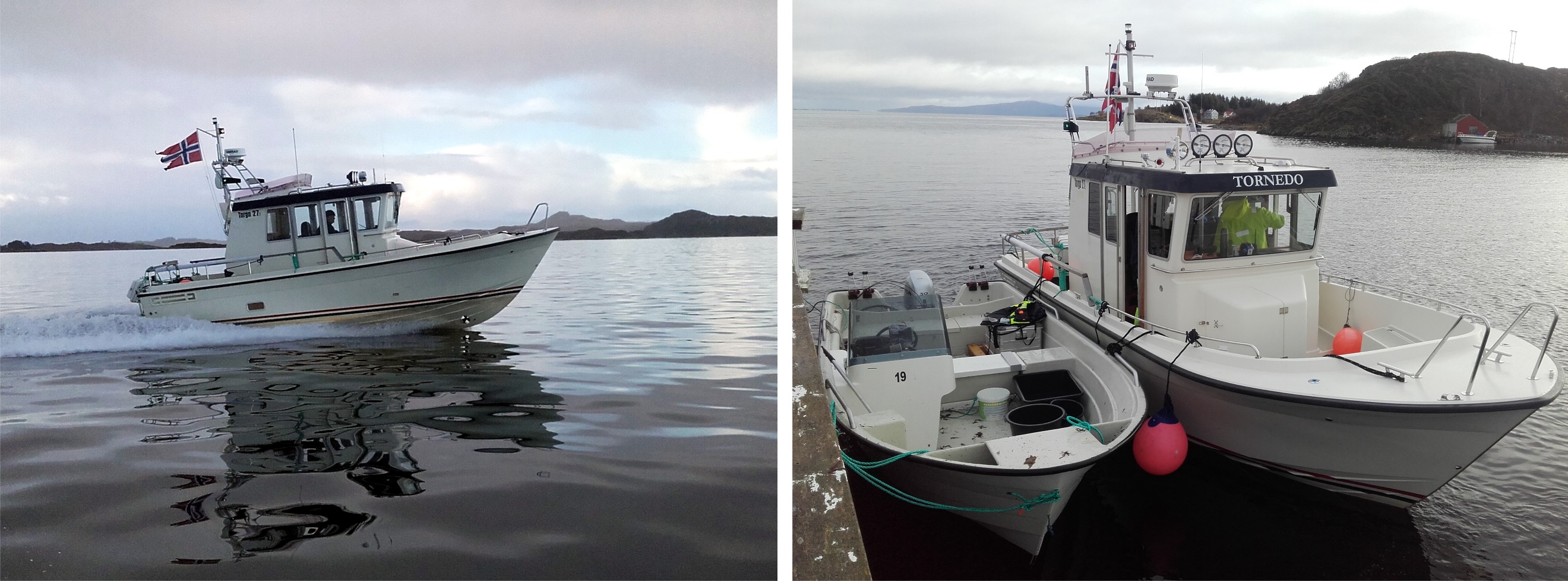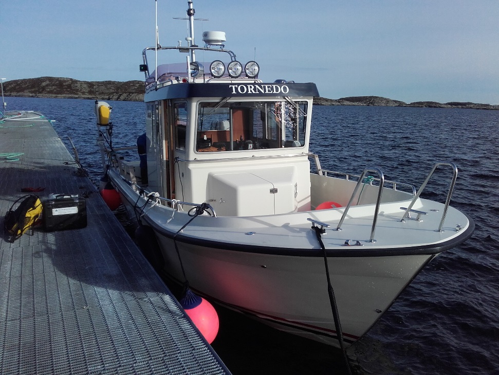 Figur 1. Båten som ble benyttet til undersøkelsene: Targa 27.1 (Norsk Sjøservice AS) med elektrisk linehaler.