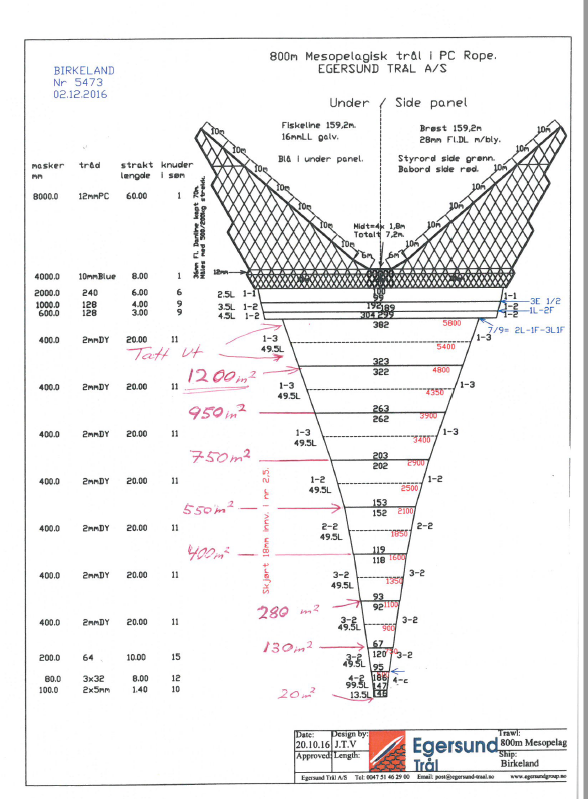 Figur 1a: Skisse, 800m mesopelagisk trål.