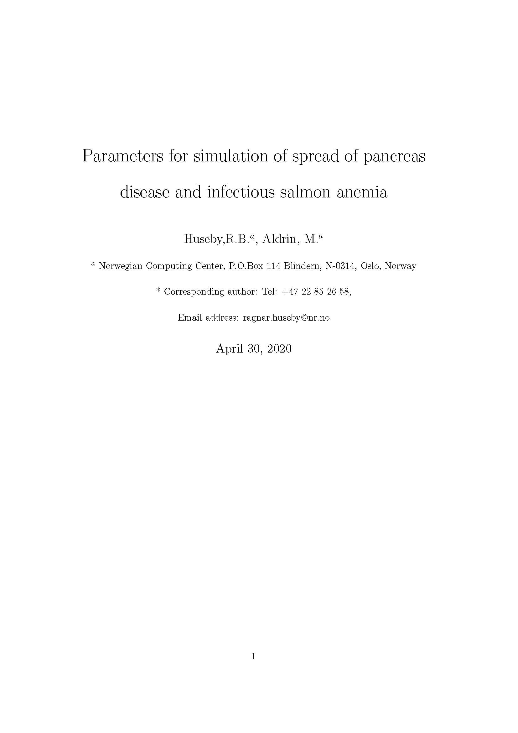 Aldrin M, Huseby RB, Jansen PA (2015) Space–time modelling of the spread of pancreas disease (PD) within and between Norwegian marine salmonid farms. Preventive Veterinary Medicine, 121, 132-141