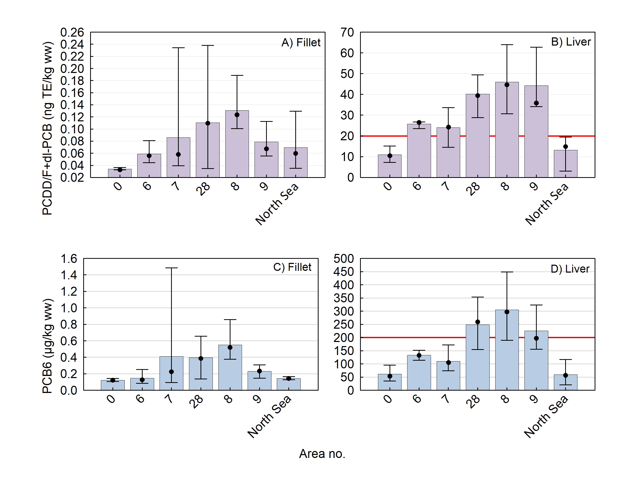 Nilsen, B.M., Frantzen, S. og Julshamn, K. (2011). Fremmedstoffer i villfisk med vekt på kystnære farvann. En undersøkelse av innholdet av dioksiner og dioksinlignende PCB i torskelever fra 15 fjorder og havner langs norskekysten 2009. NIFES-rapport. 77 s.
