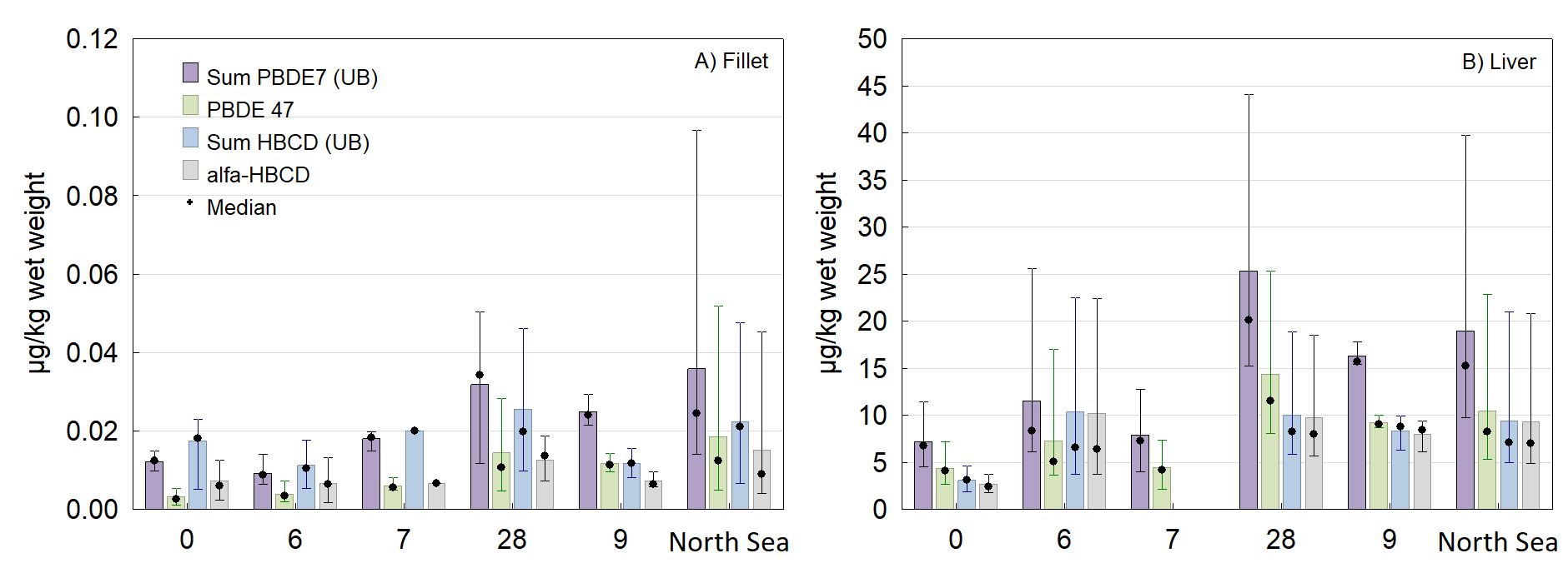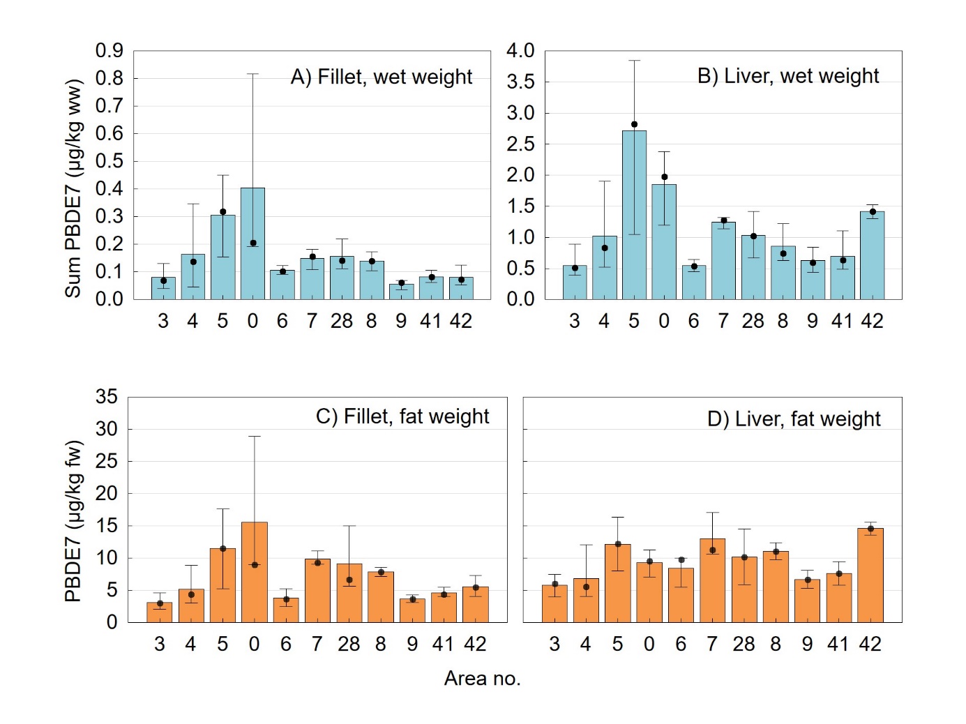 PBDE7 – Sum av syv PBDE (PBDE-28, -47,-99, -100,- 153, -154 og -183)