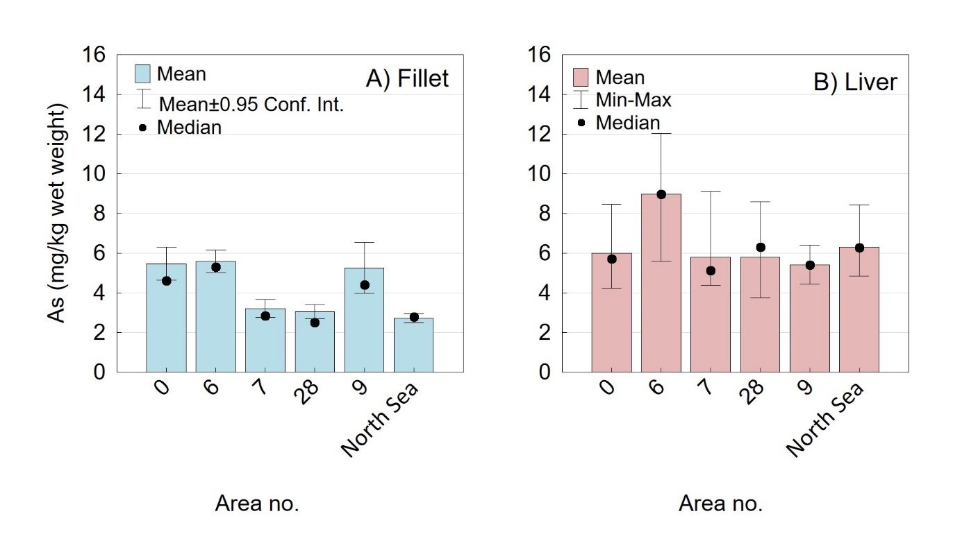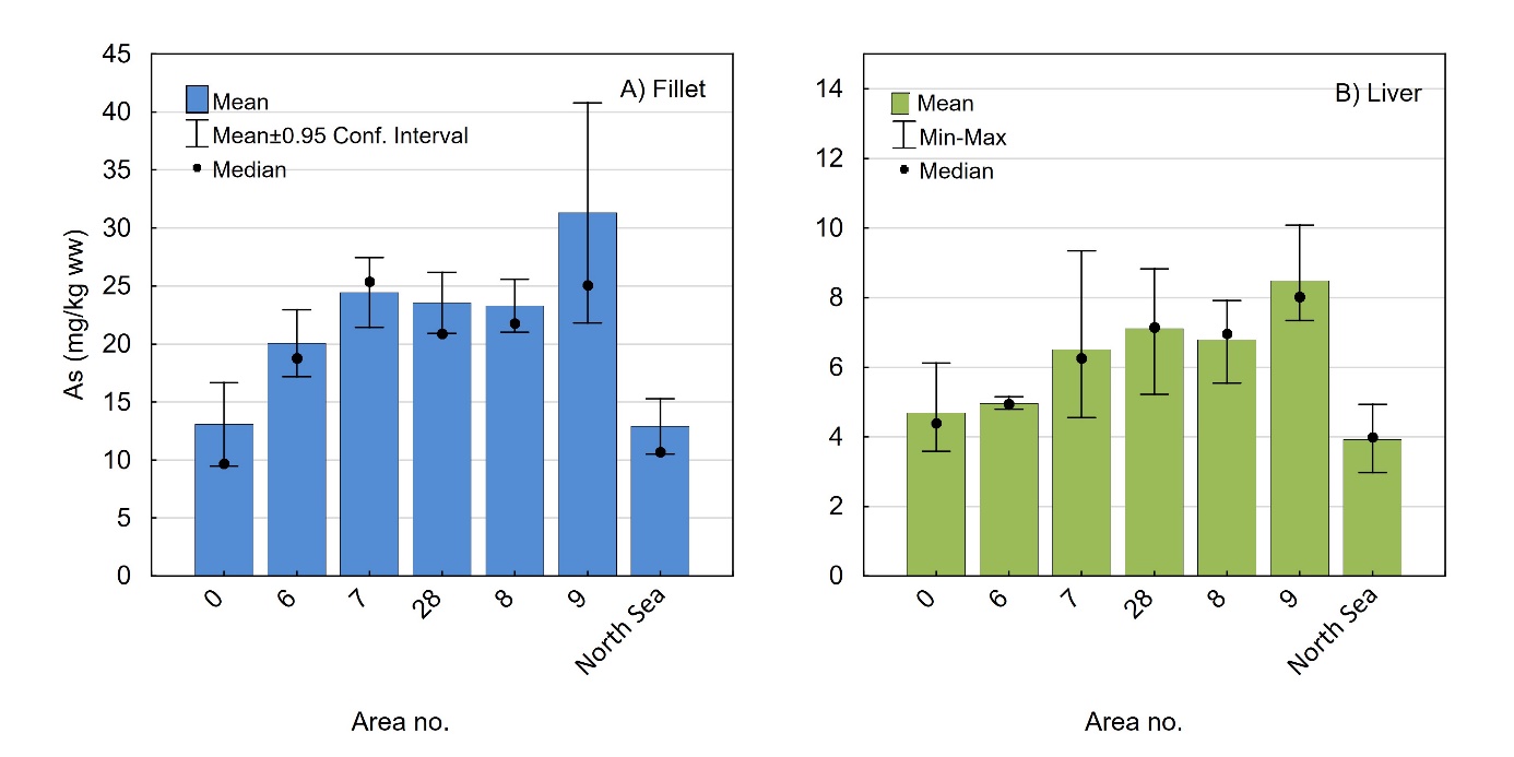 Leah, R.T., Evans, S.J. og Johnson, M.S. (1992). Arsenic in plaice (Pleuronectes platessa) and whiting (Merlangius merlangius) from the North-East Irish Sea. Marine Pollution Bulletin 24(11): 544-549.