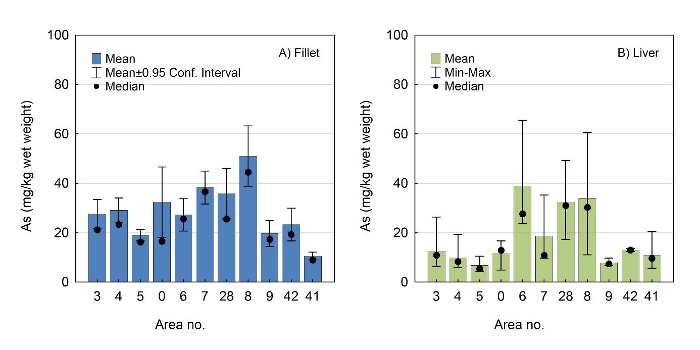 Julshamn, K., Nilsen, B.M., Frantzen, S., Valdersnes, S., Maage, A., Nedreaas, K. og Sloth, J.J. (2012a). Total and inorganic arsenic in fish samples from Norwegian waters. Food Additives & Contaminants Part B-Surveillance 5(4): 229-235.