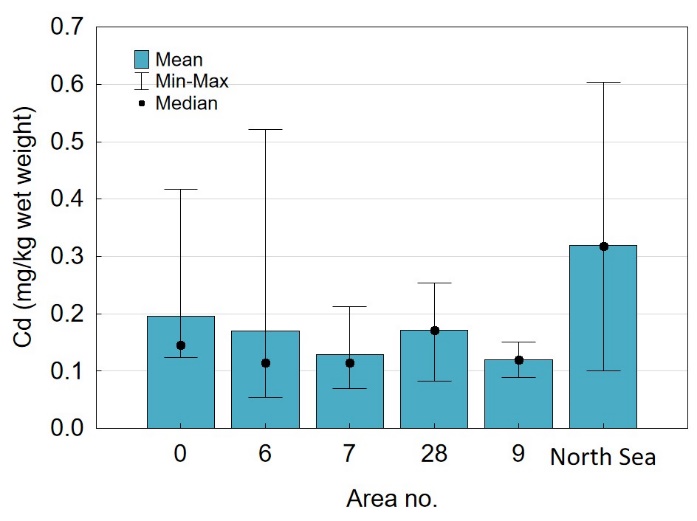 Julshamn, K., Duinker, A., Nilsen, B.M., Nedreaas, K. og Maage, A. (2013c). A baseline study of metals in cod (Gadus morhua) from the North Sea and coastal Norwegian waters, with focus on mercury, arsenic, cadmium and lead. Marine Pollution Bulletin 72(1): 264-273.