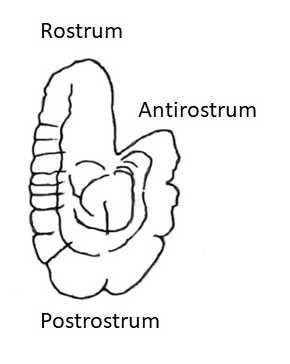 Rostrum (Eng. rostrum): En fremre nedre utvekst på sagitta.
