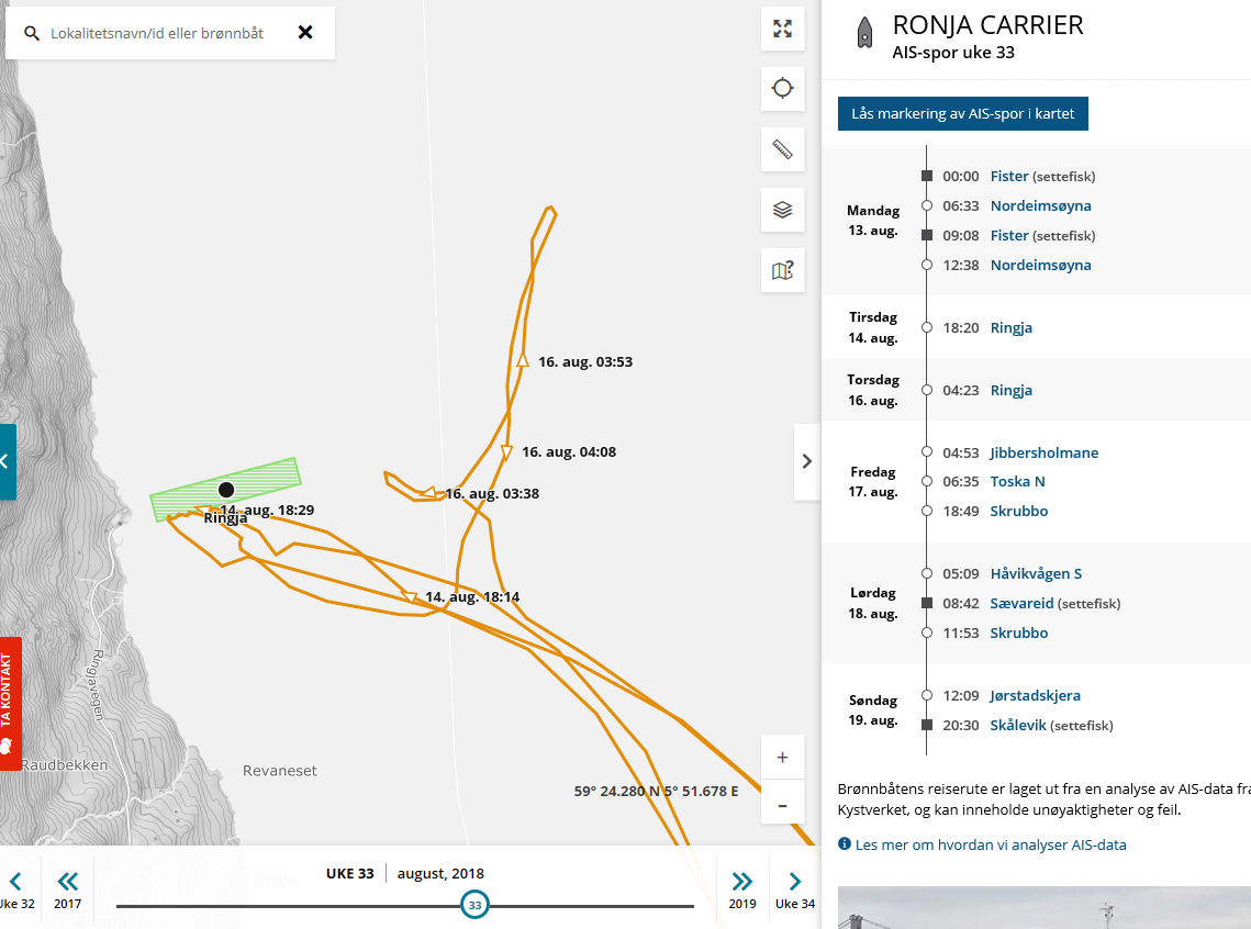 3.1 - Funn av død krill og informasjon om nærliggende oppdrettsanlegg og brønnbåtaktivtet