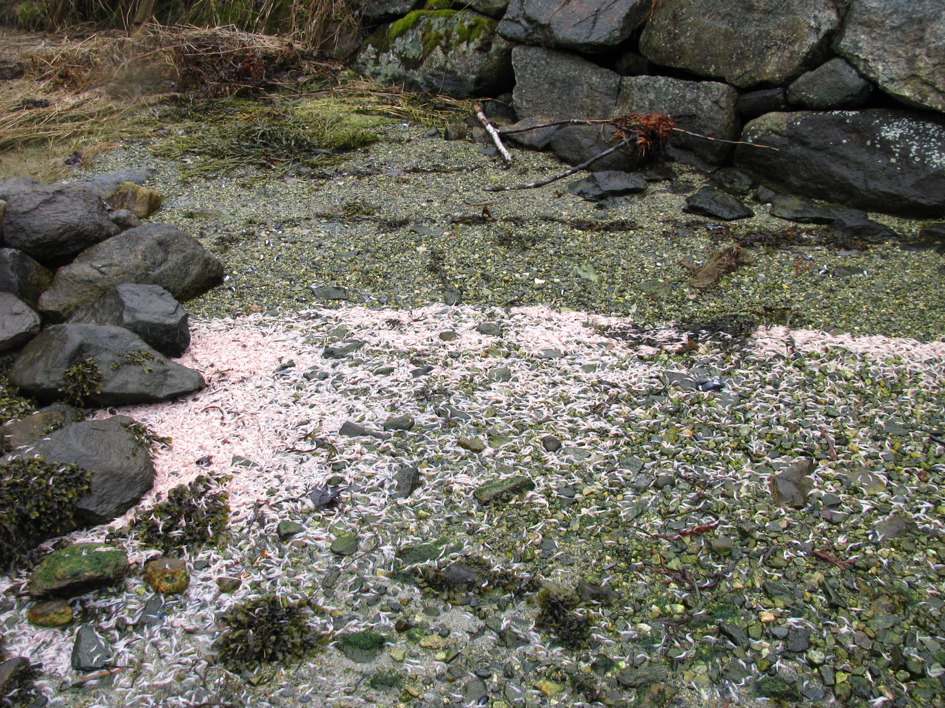 Even if most of the incidents of stranded krill cannot be linked directly to any specific delousing activity, this report nonetheless shows that most of the incidents have taken place in the fjords of Hordaland and Rogaland – areas with many fish farms and with a lower renewal of the bottom water compared with other areas with high aquaculture activity. Closer studies of the phenomenon in these fjords should therefore be carried out. Presently we know too little to rule out a connection between the mass strandings and the aquaculture industry in this area.