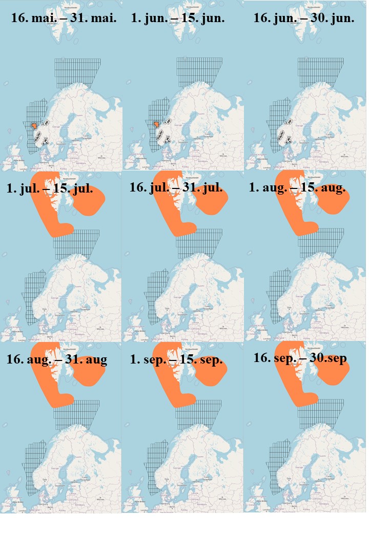 Vi valgte å bruke samme kildenivå som brukt i Handegard et al. (2013), oppgitt som SEL=250.5 dB re 1 uPa2s. Bunnkart for de ulike havområdene ble hentet fra http://portal.emodnet-bathymetry.eu/.