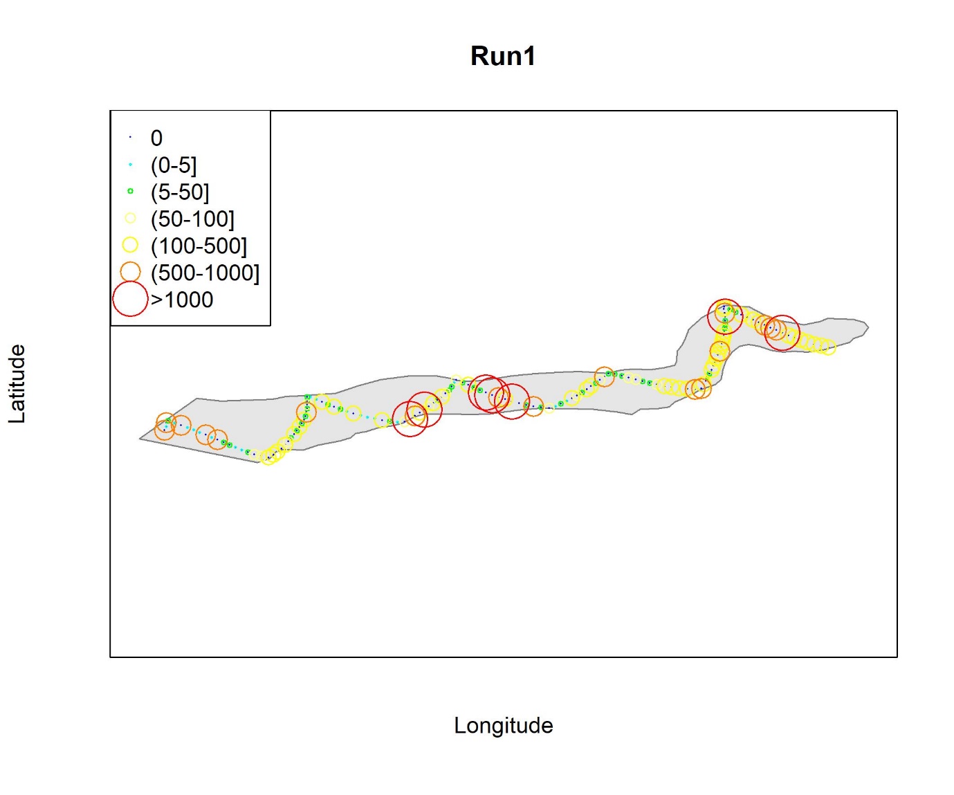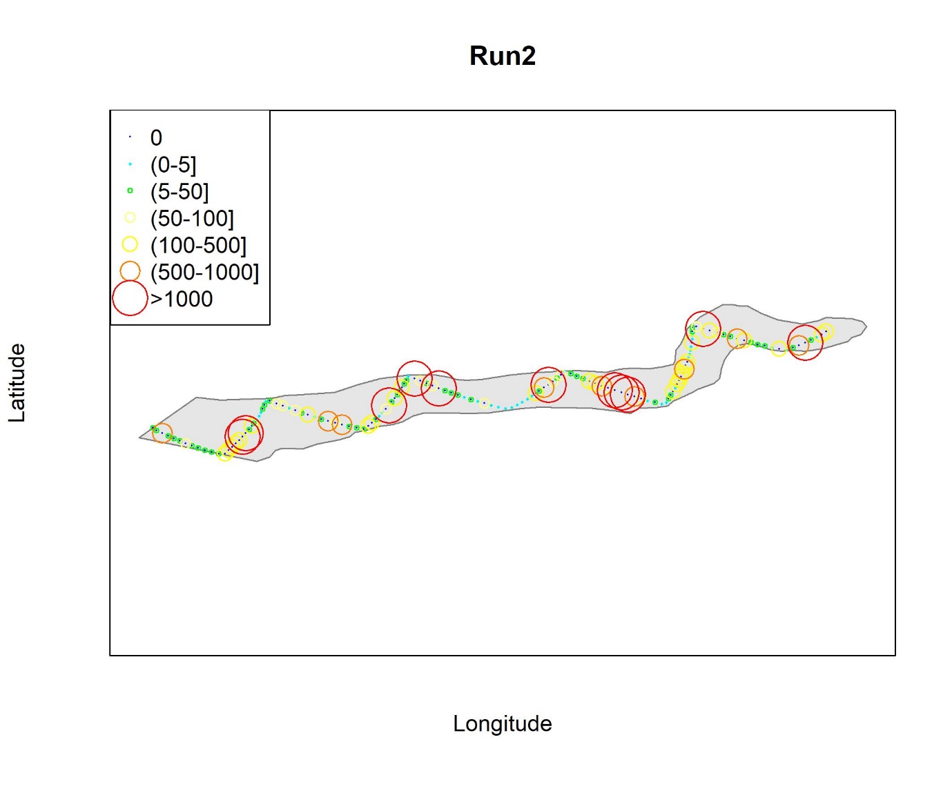 For the run 1 and run 2 experiments, the Rstox::surveyPlanner was used to generate evenly distributed transects with random start position in a zig-zag pattern across the fjord, using the following settings in surveyPlanner: