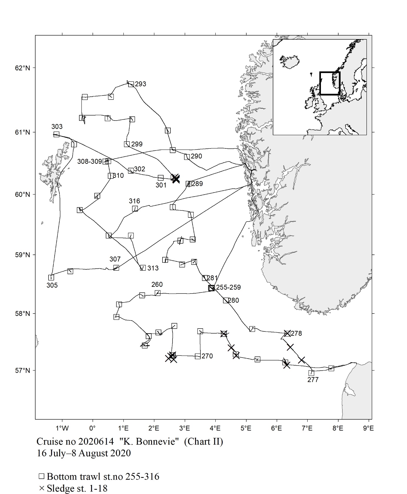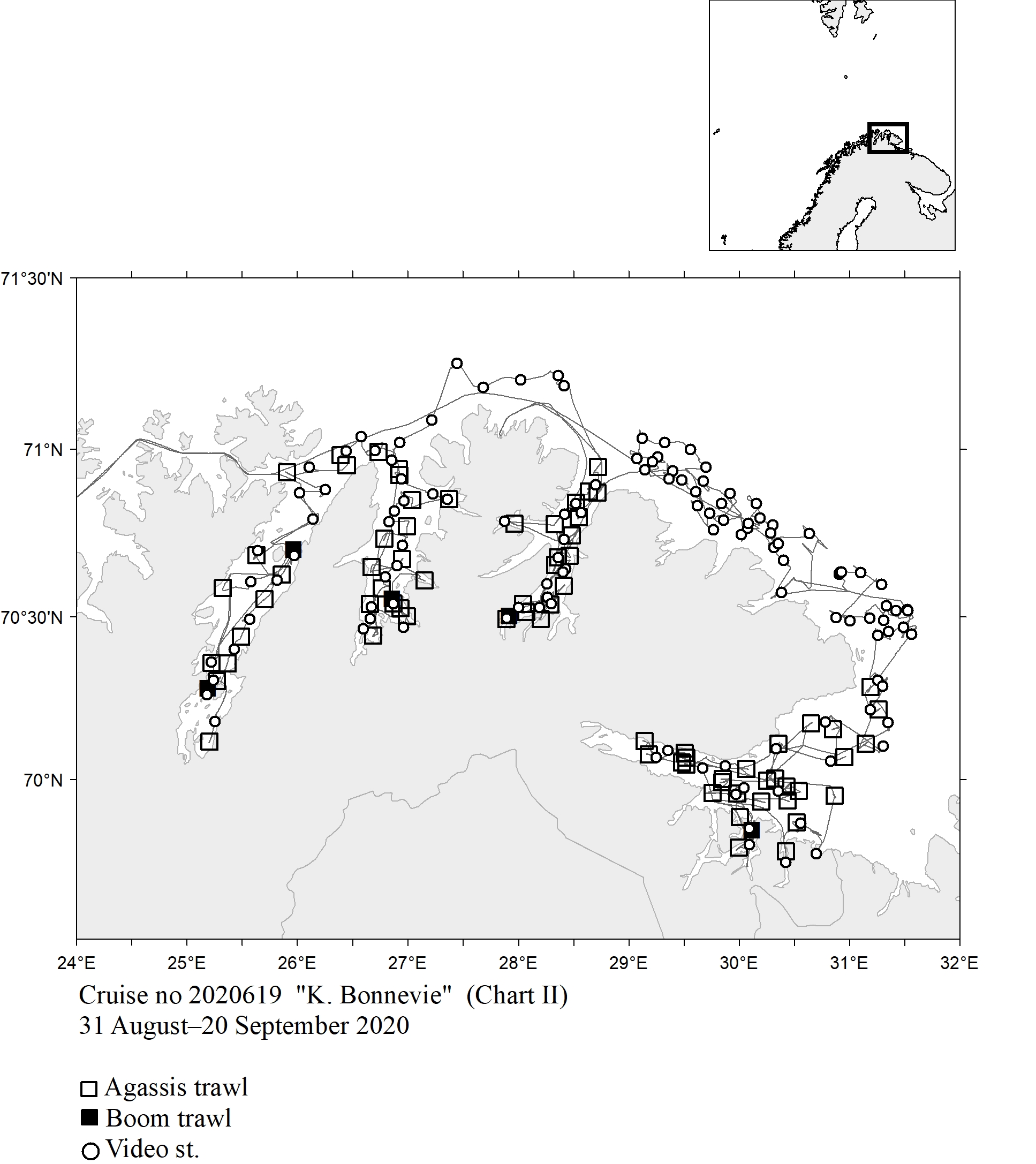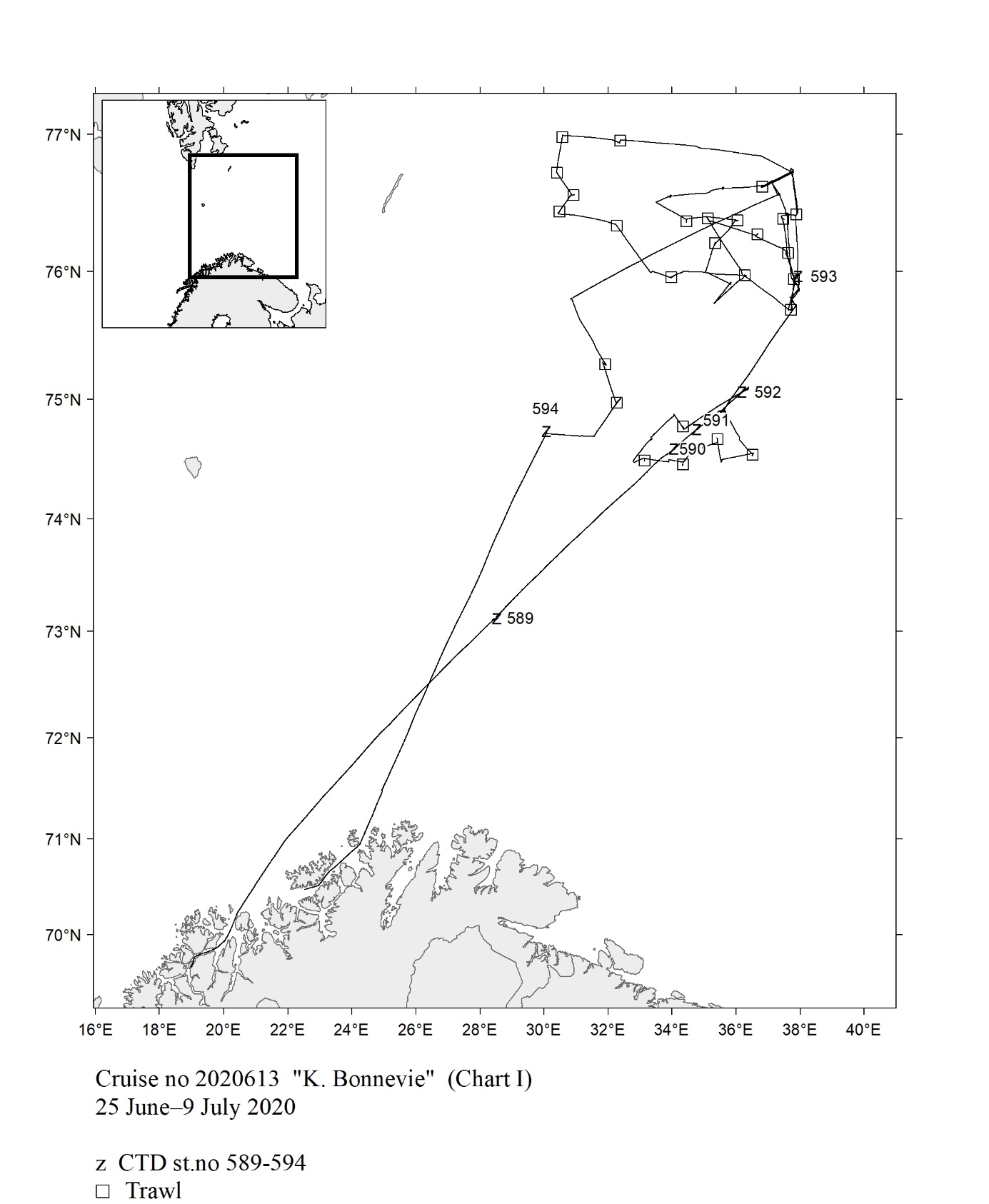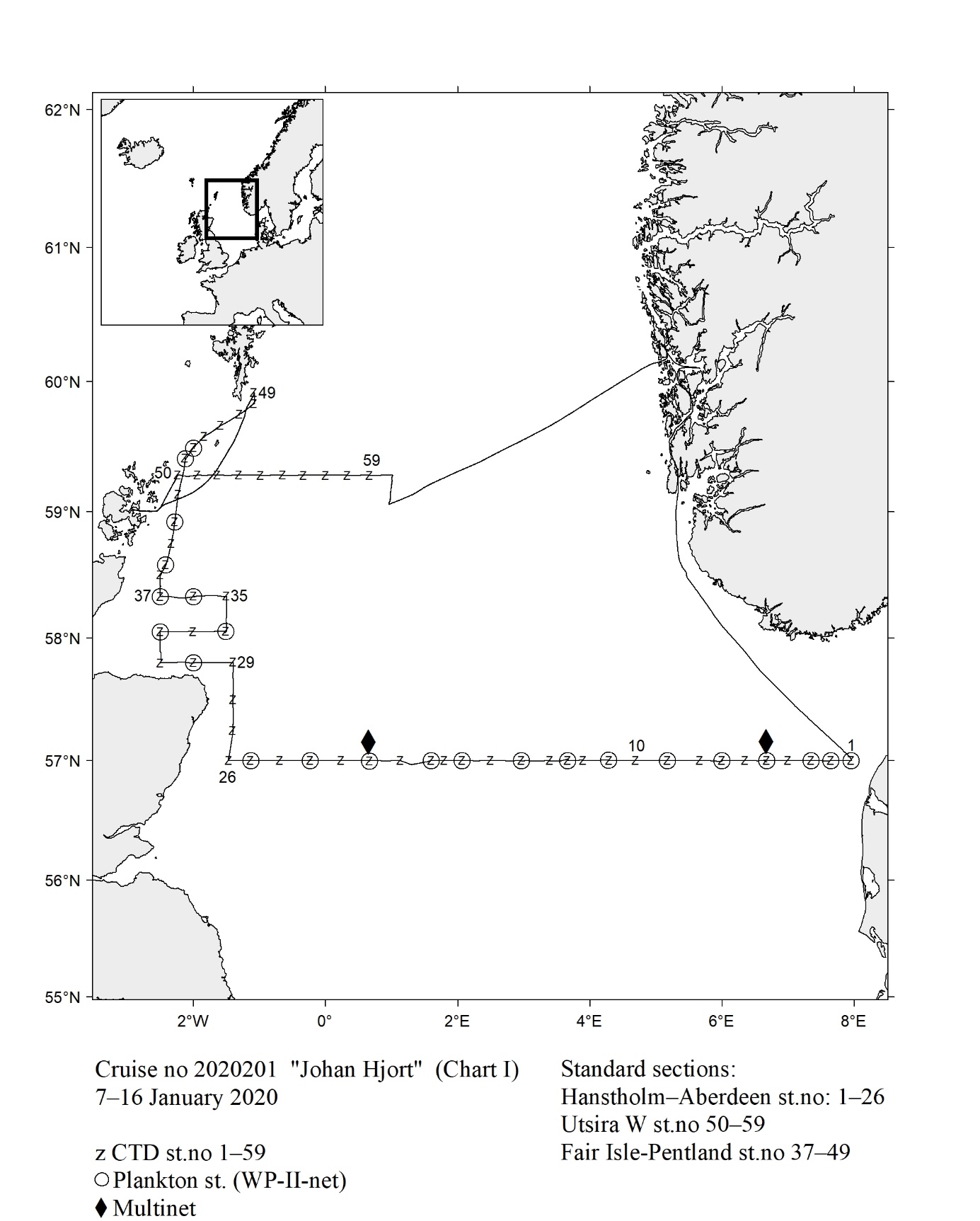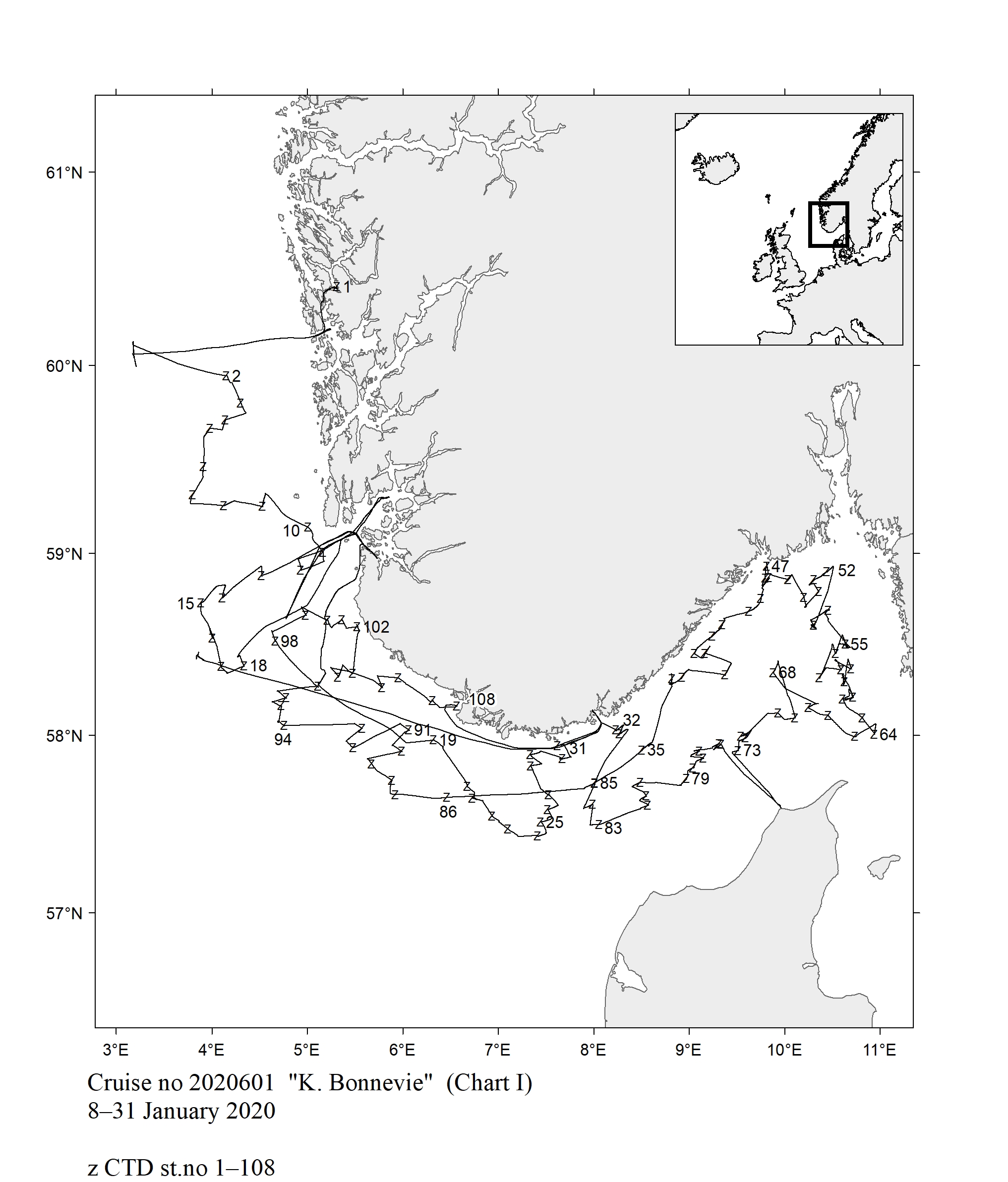 1 - Charts overview 2020 – Ctd stations and trawl stations.