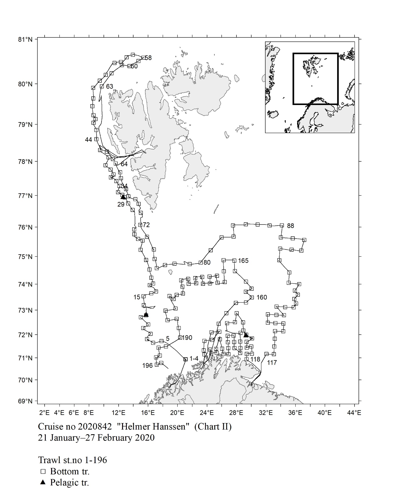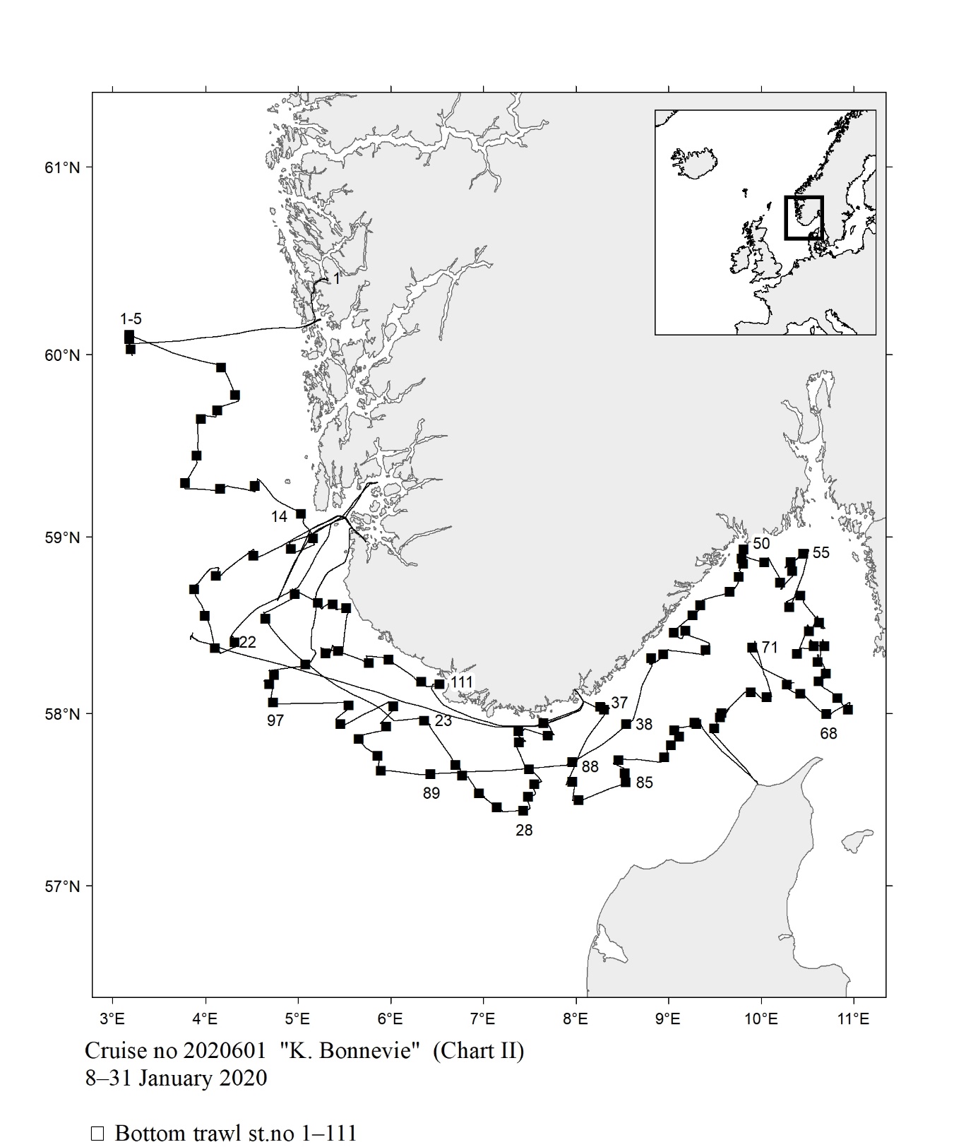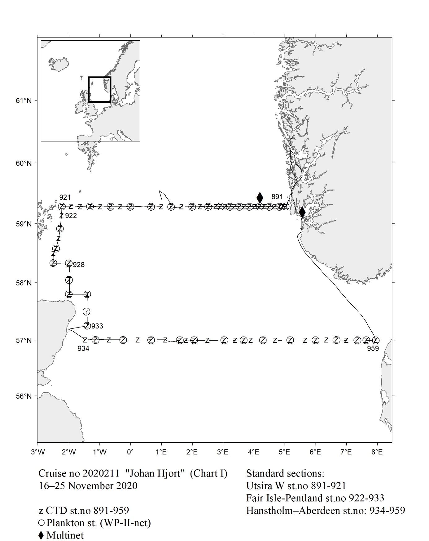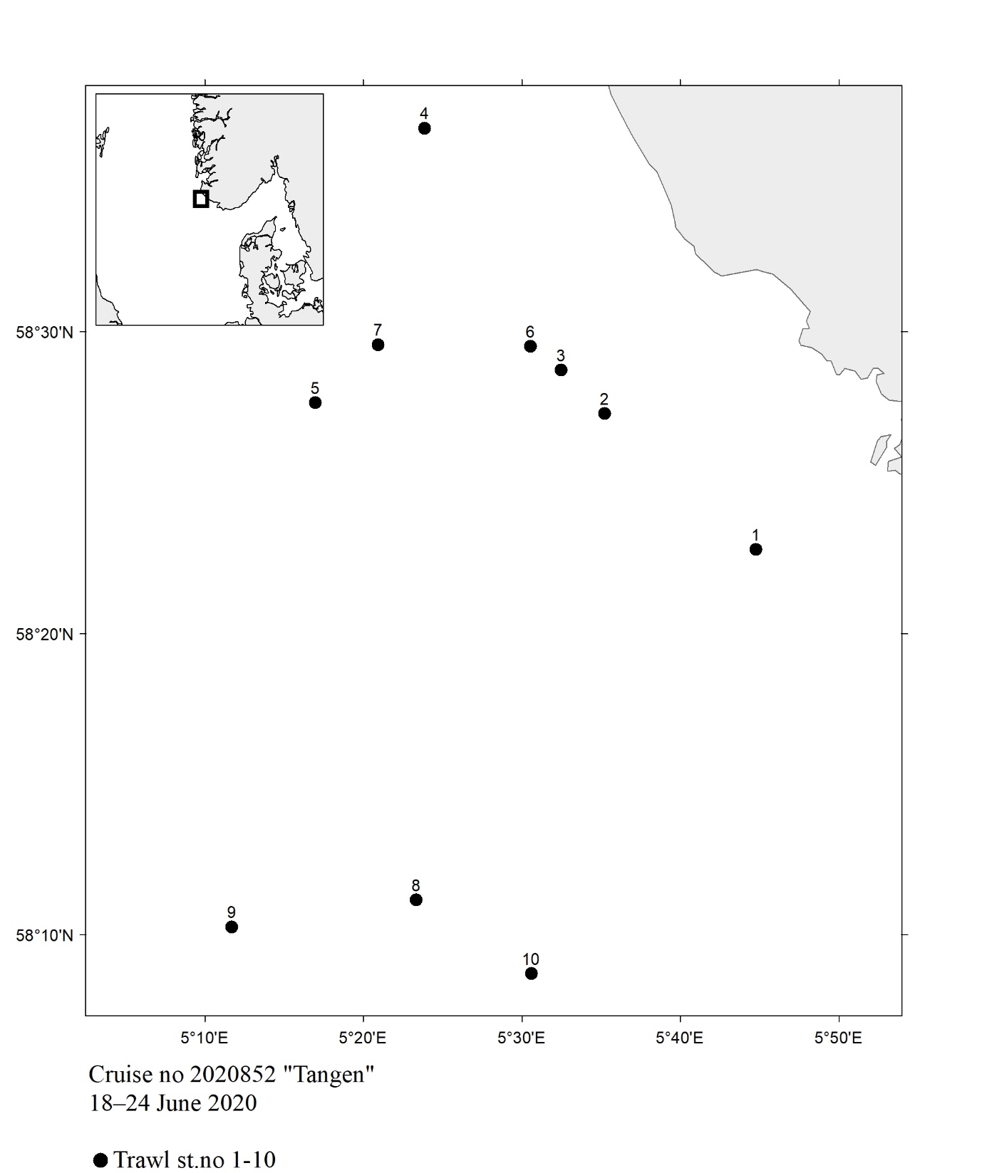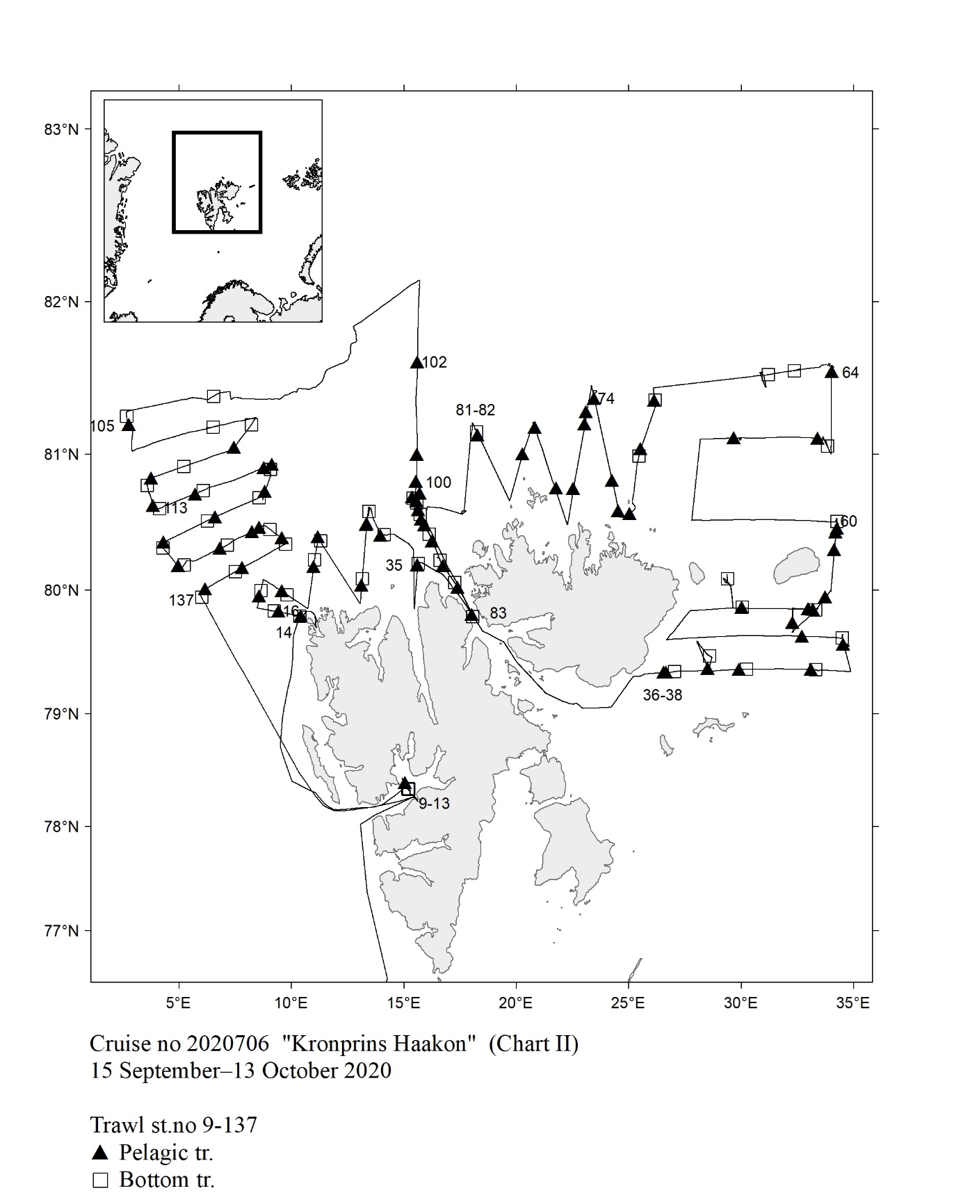 1 - Charts overview 2020 – Ctd stations and trawl stations.