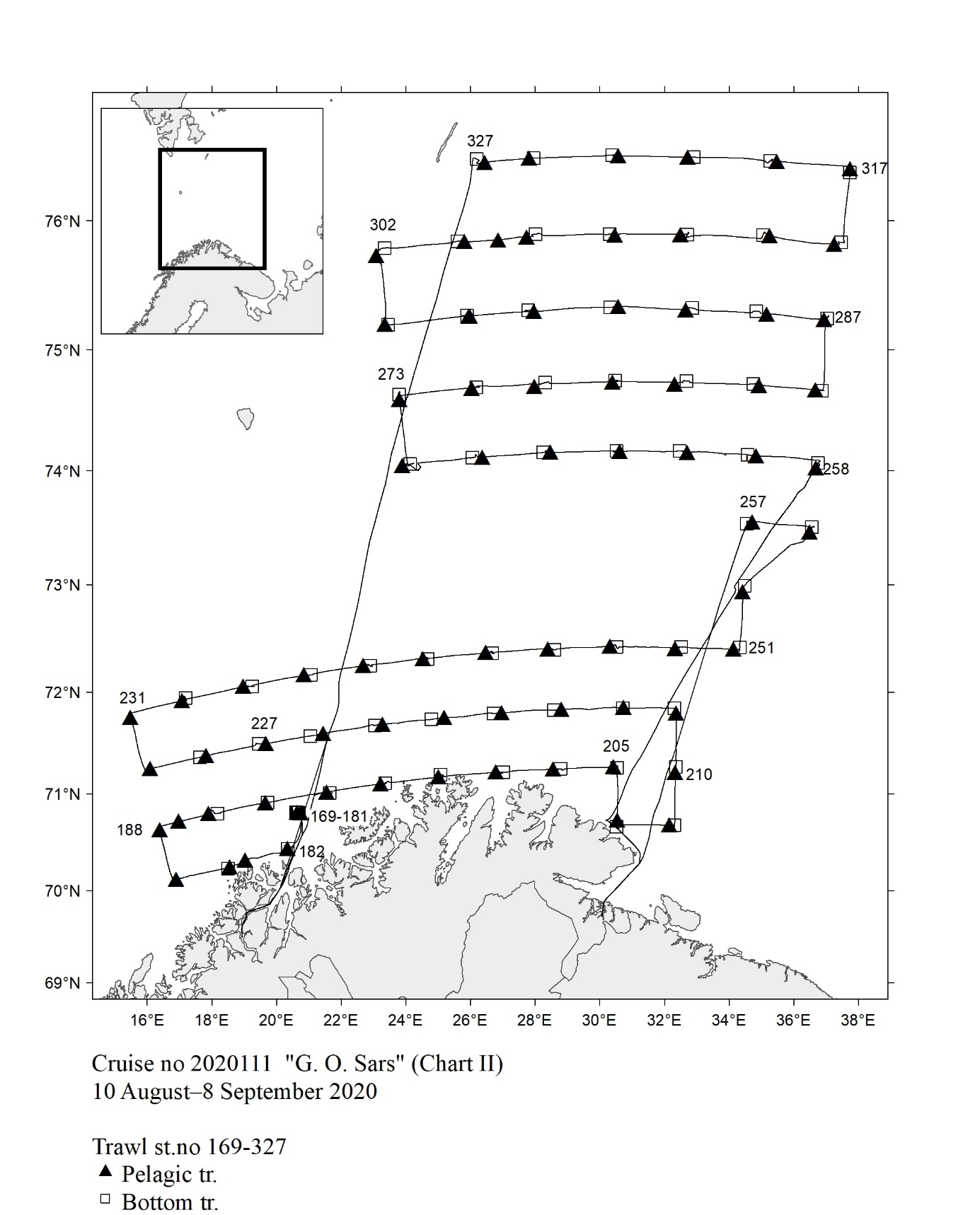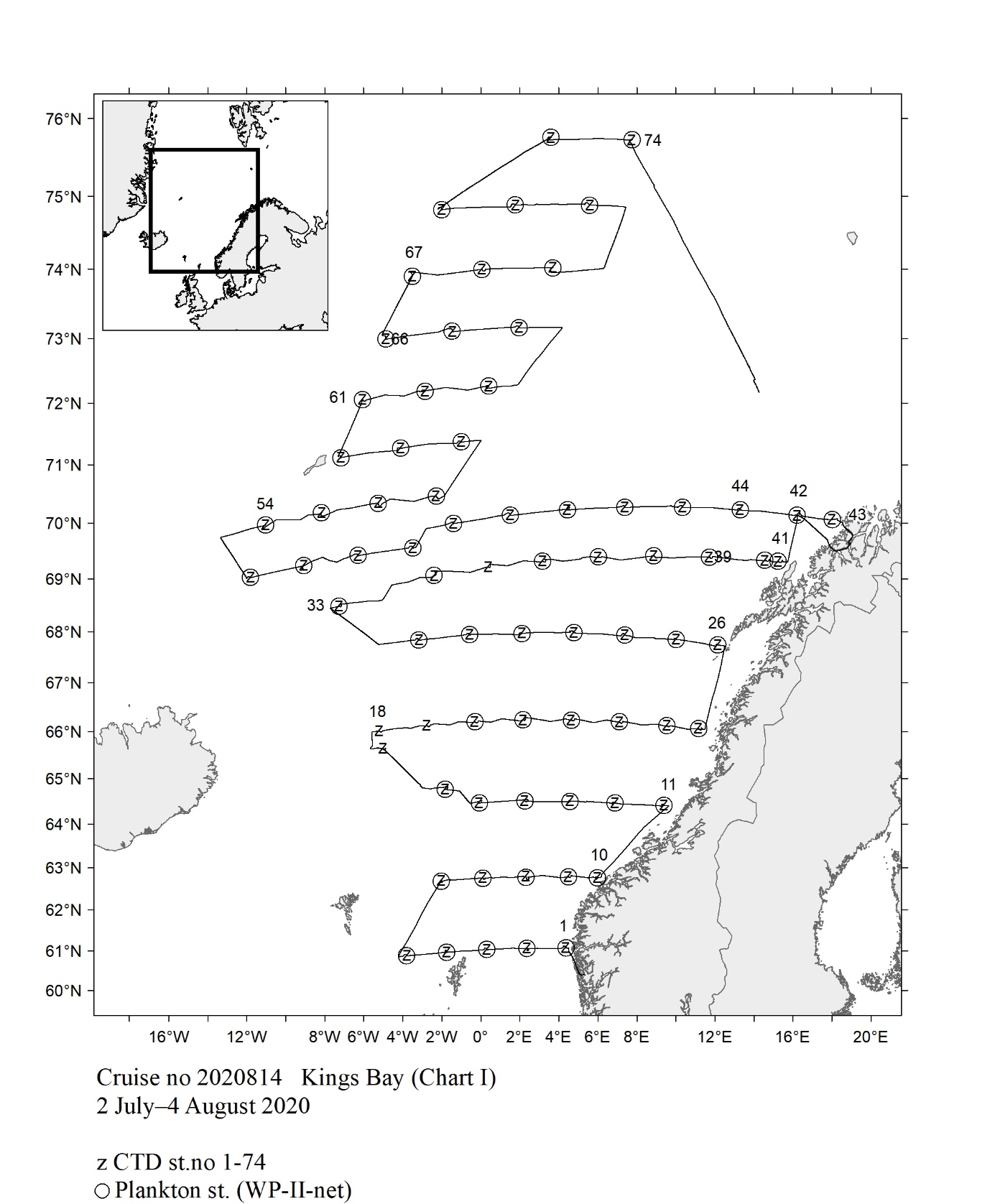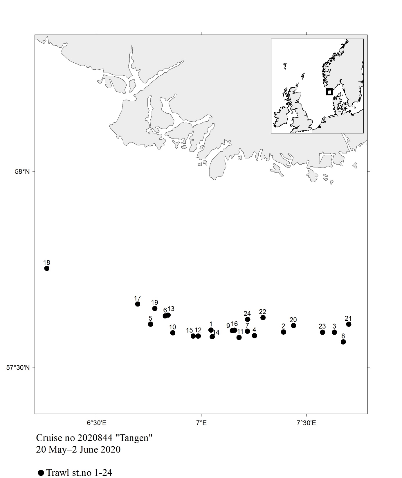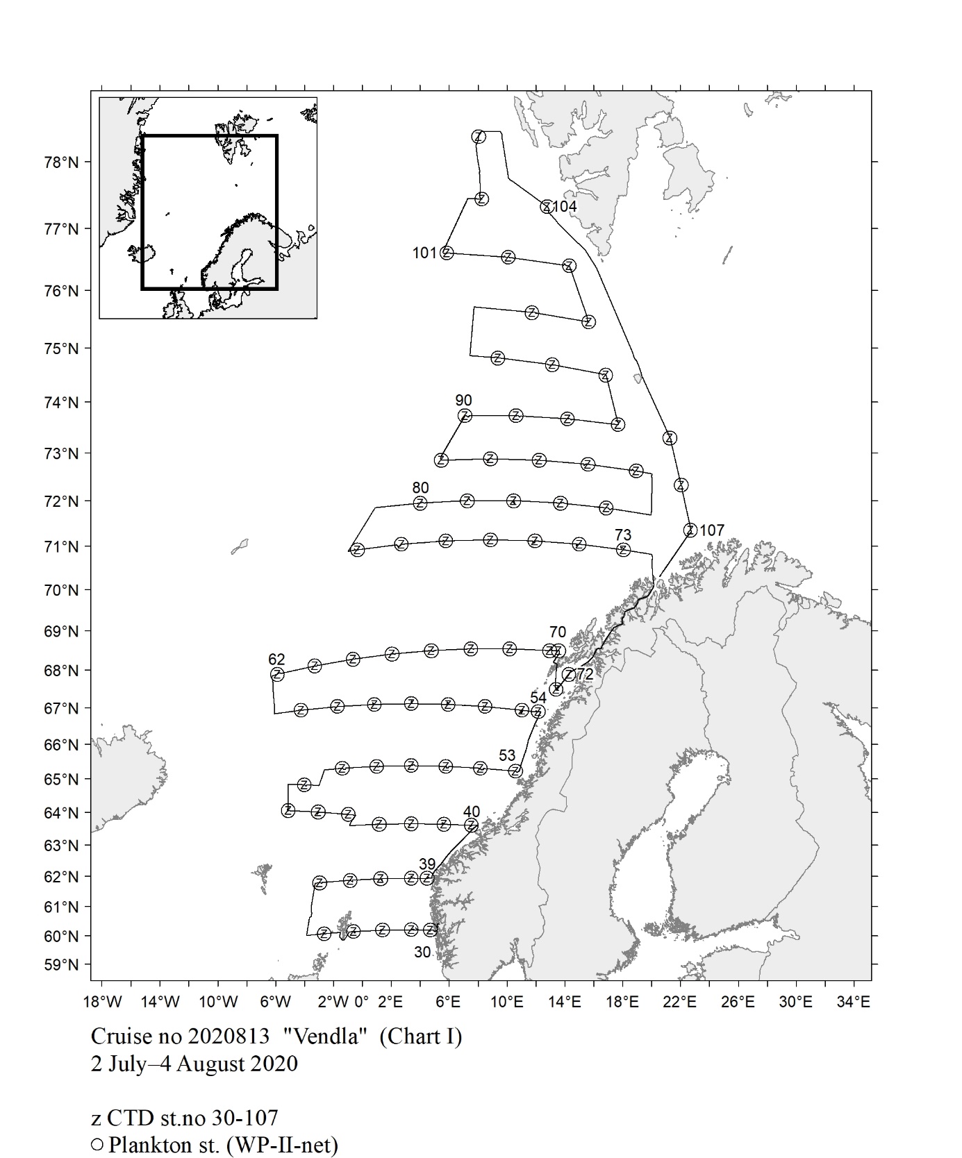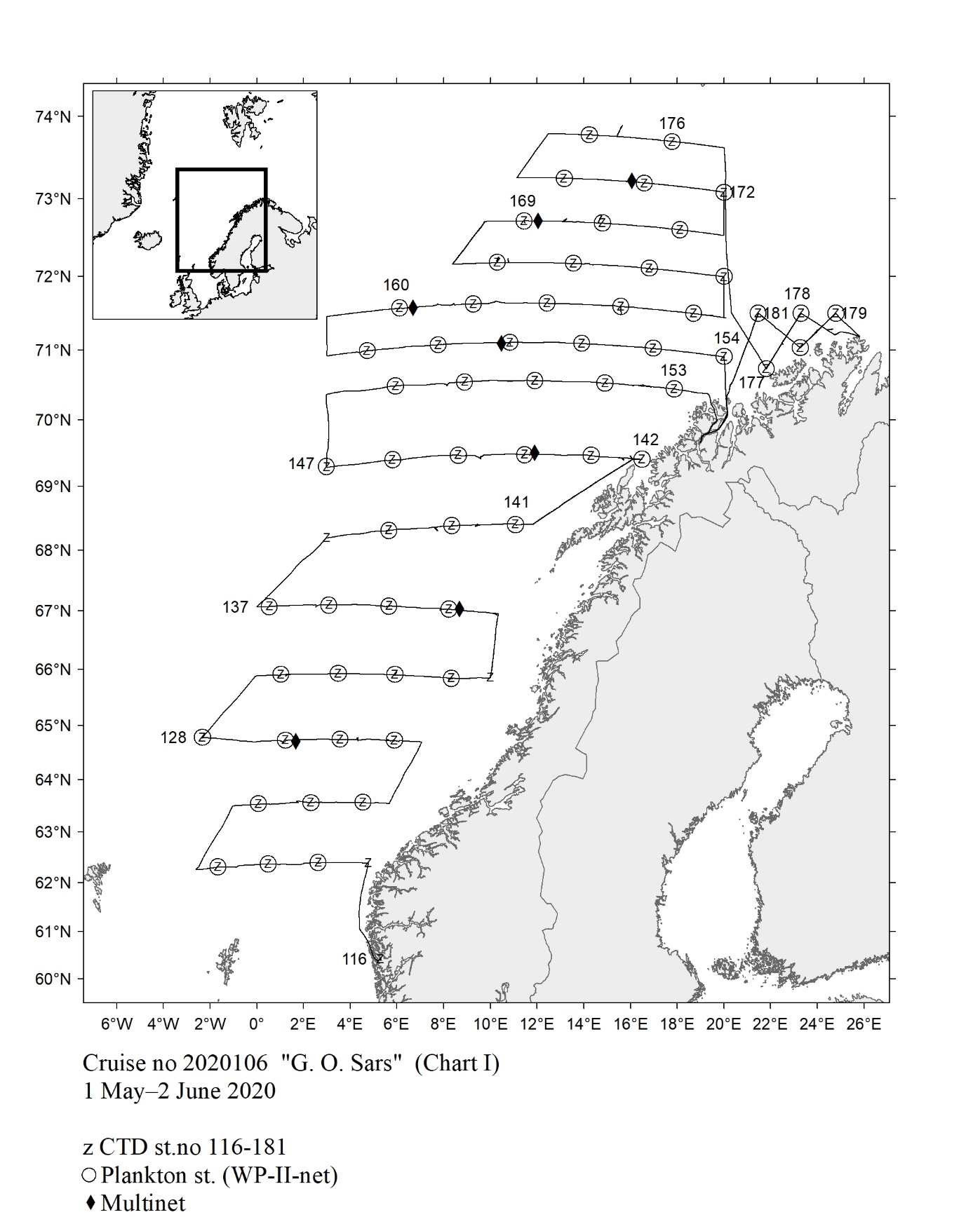 1 - Charts overview 2020 – Ctd stations and trawl stations.