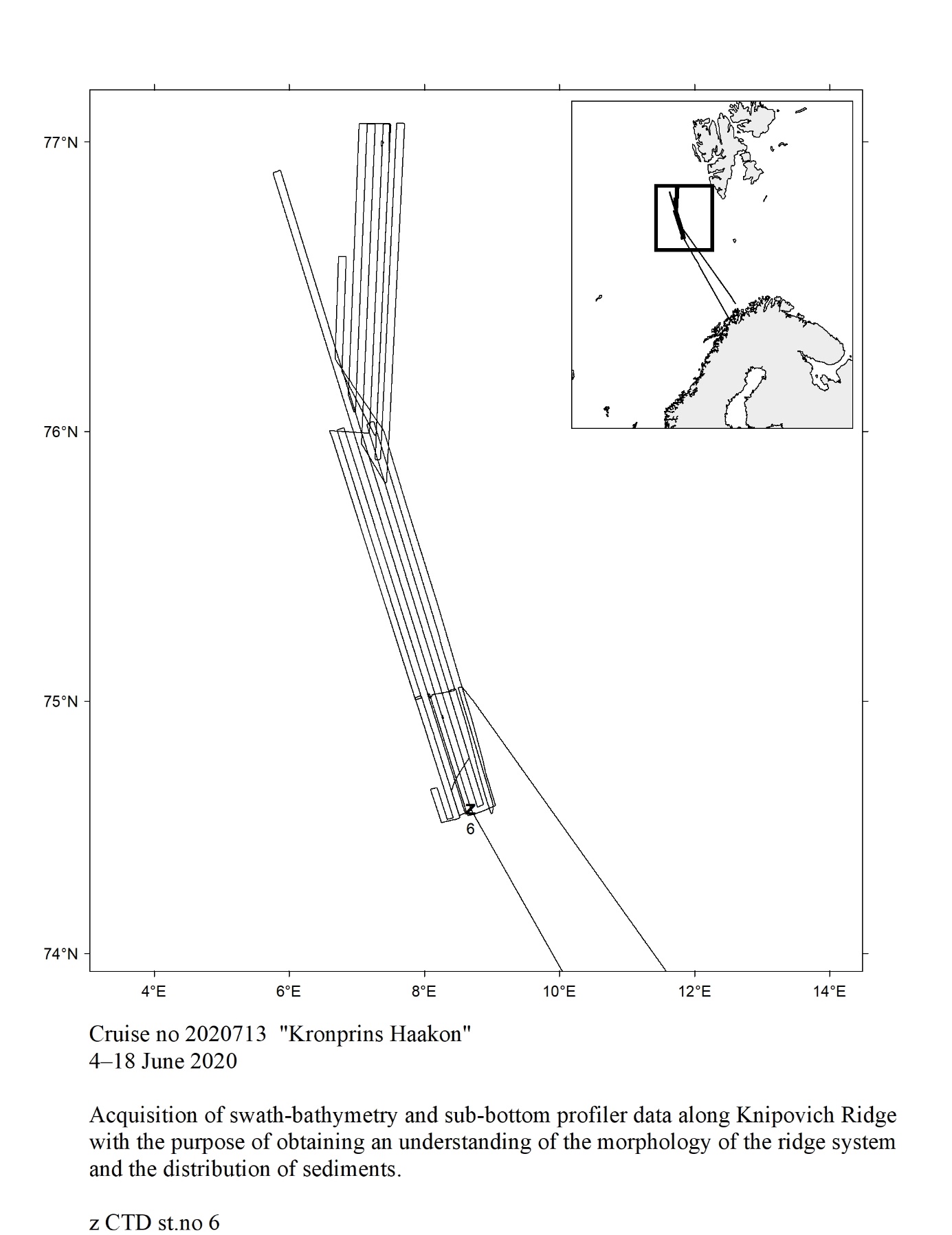 The cruise forms part of a multipurpose, multiship ecosystem survey of the Barents Sea, a joint enterprise of IMR in Bergen, Norway and Northern Branch of VNIRO (PINRO) in Murmansk, Russia. Three Norwegian and two Russian research vessels participate. The aim is to conduct a full coverage of the Barents Sea and adjacent areas north of Svalbard, where all compartments of the ecosystem is studied ; physical and chemical oceanography, phytoplankton, zooplankton, pelagic fish, demersal fish, marine litter, sea birds and sea mammals. |