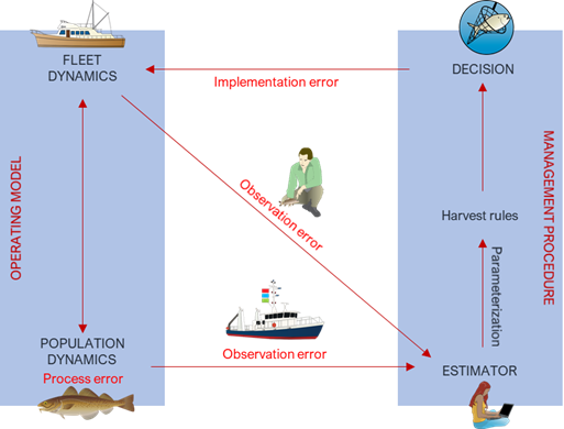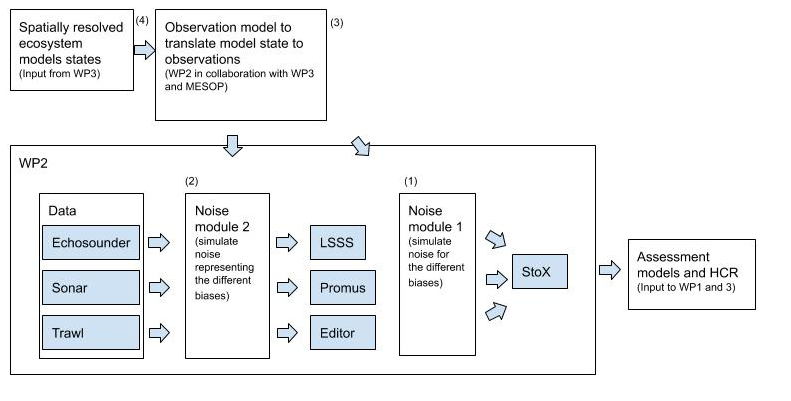State space models (SSMs) generally include a model for the hidden states, a process model, and observation models that link noisy observational data to the process. This class of models have become accepted as the most appropriate for fish stock assessments, as they provide a consistent and transparent approach to linking a population model for the fish stock and a data model that links observations, such as catch data and survey indices, to unobserved quantities in the population model. Several variants of this model structure exist in the literature. The quality (including levels of uncertainty) of results obtained from SSMs, however, is dependent on process and process error descriptions. The process error description also includes the description of errors associated with data (e.g., catch in number at age, and fisheries-independent survey indices of abundances at age). WP1 has delivered on two major areas: (i) a novel approach to including dynamical process models in SSM frameworks, and (ii) improved methodology in modeling process and observation errors in the state-of-the art software in stock assessment.