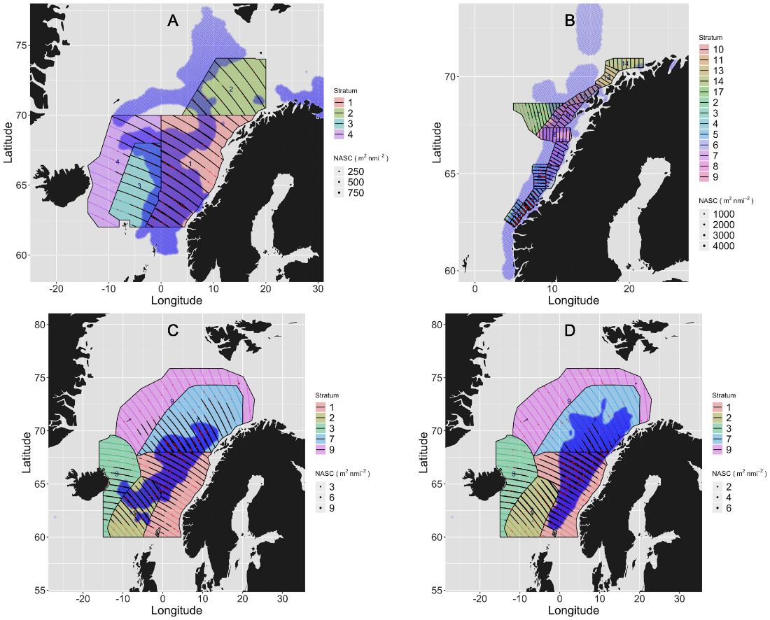 For Fisheries-dependent (catch) surveys and assessment modeling (WP1) one of the main outcomes were improved stock assessment models, both by further developing and implementing the XSAM assessment model in the WGWIDE assessment of the Norwegian Spring Spawning (NSS) herring, but also as an auxiliary model for the North East Arctic (NEA) cod in the AFWG. Through collaboration with DTU Aqua, XSAM functionality has also been implemented in the SAM codebase, making it possible to utilize structures from both models. Several studies were carried out exploring the limitations of the initial conditions in stock assessment model, e.g. modelling with mean instead of mode in SAM, and inclusion of process error in catch equation in SAM. Another major outcome of WP1 was the development and implementation of probabilistic sampling of pelagic fish catches, the ‘catch sampling lottery’, which has been expanded gradually from covering the herring fishery to being the standard catch sampling for all of the pelagic fishing fleets from 2021. To estimate catch in numbers-at-age based on data from the catch sampling lottery, design-based estimators were developed and included in an R-package. Also, the model-based estimator for catch in number at age (ECA) that is used as the standard for the major demersal fisheries in Norway was further developed as an R-package (R-ECA) and implemented in StoX.