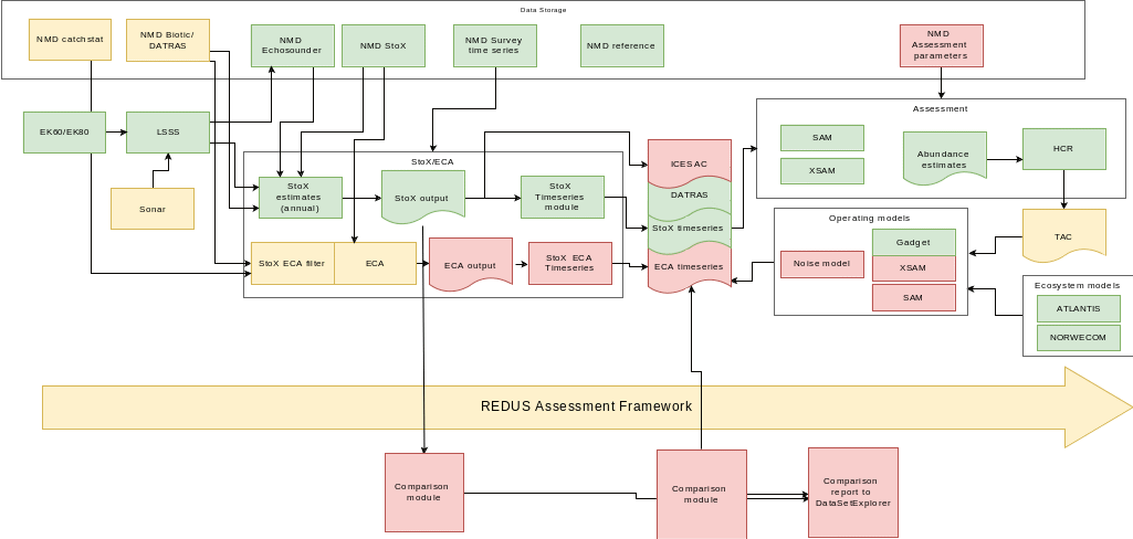 Through REDUS, the Norwegian computing center has developed a new version of the Bayesian software-framework for catch at age estimation, ECA. The new version has been generalized for adaptability and has been packaged as an R-package (Reca). An interface for this R-package has been developed in StoX through the Sea2Data project, and REDUS has been working with operationalizing this solution: educating users, gathering requirements for further development and controlling quality of implementations.
