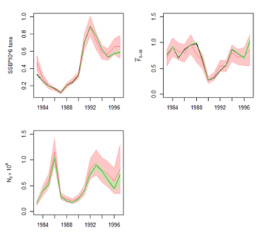 The efficacy of the XSAM modeling framework has been evaluated by application to e.g., assessment of the NSS herring. Results obtained show that utilization of prior knowledge about sampling errors lead to reduction in uncertainty, and improved inference (ICES 2016a, ICES 2016b) , and the model was adopted as the assessment model used for providing management advice (ICES 2016b, ICES 2020). It has also formed the basis for estimating reference points (ICES 2018a) and management strategy evaluation (ICES 2018b) for this stock.
