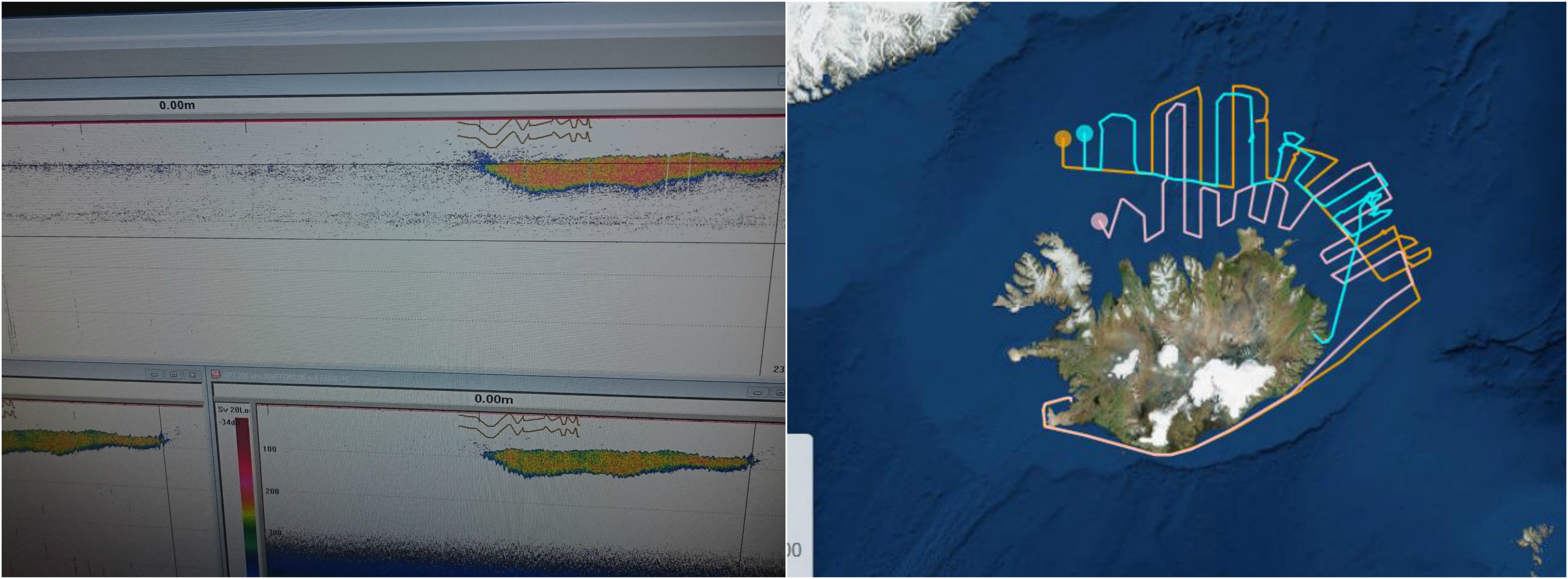 Etter avgang fra Reykjavik vendte «Arni Fridriksson», «Bjarni Sæmundsson» og «Polar Amarok» baugene mot fiskefeltene vest for Island. Innsiget av lodde blir gjerne kartlagt minst to ganger.