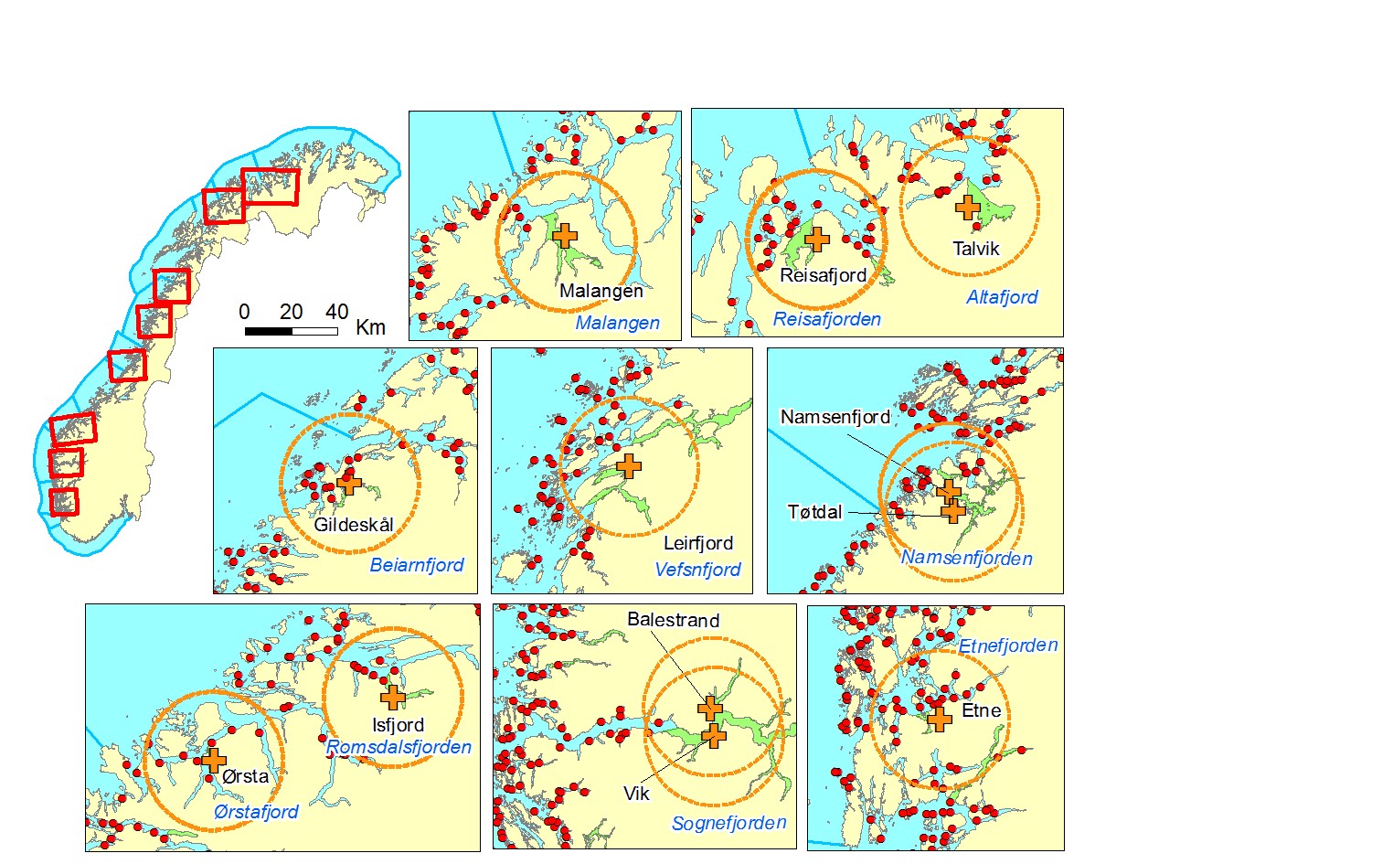 For beitende sjøørret og sjørøye ser det derfor ut som om de nasjonale laksefjordene stort sett gir vern mot smitte av lakselus fra oppdrettsanlegg dersom de er store, eller dersom det er stor avstand til oppdrettslokaliteter.