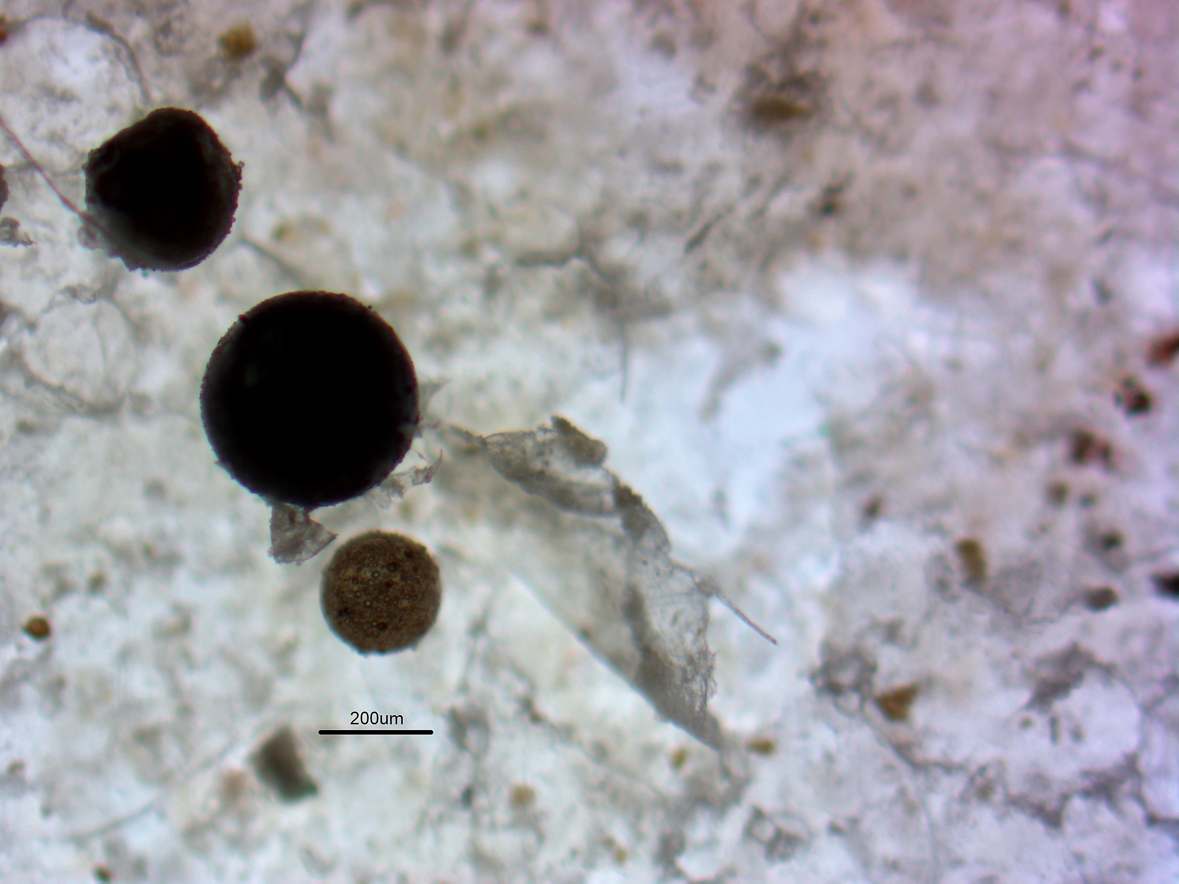 Forskerne identifiserte mikroplast gjennom mikroskopet. Her et blått fragment av plast. Foto: Hege Lyngvær Mathisen/HI