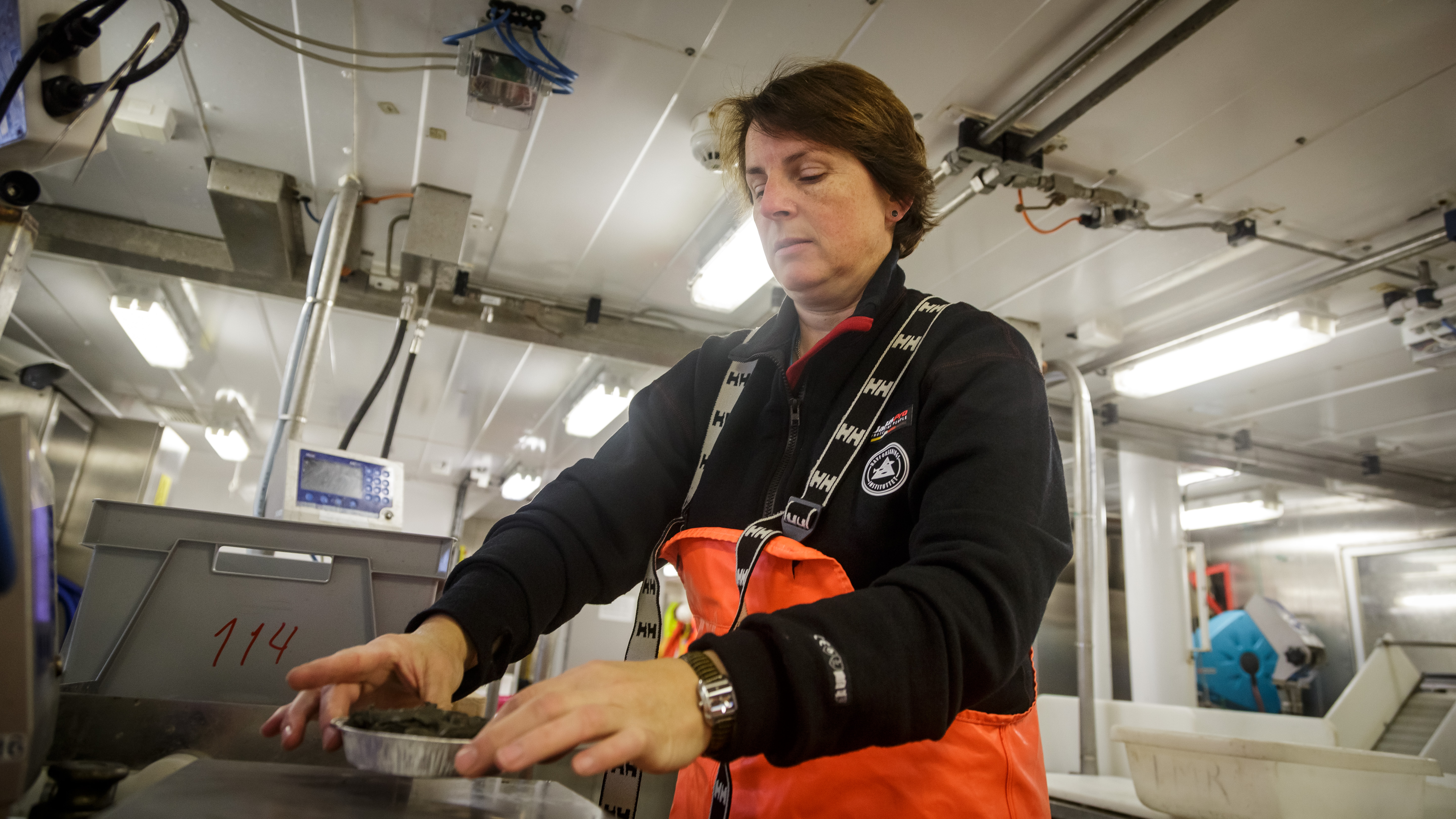 – Nå kommer vi tettere på vraket og får til en enda bedre prøvetaking, sier HI-forsker og toktleder Hilde Elise Heldal.
