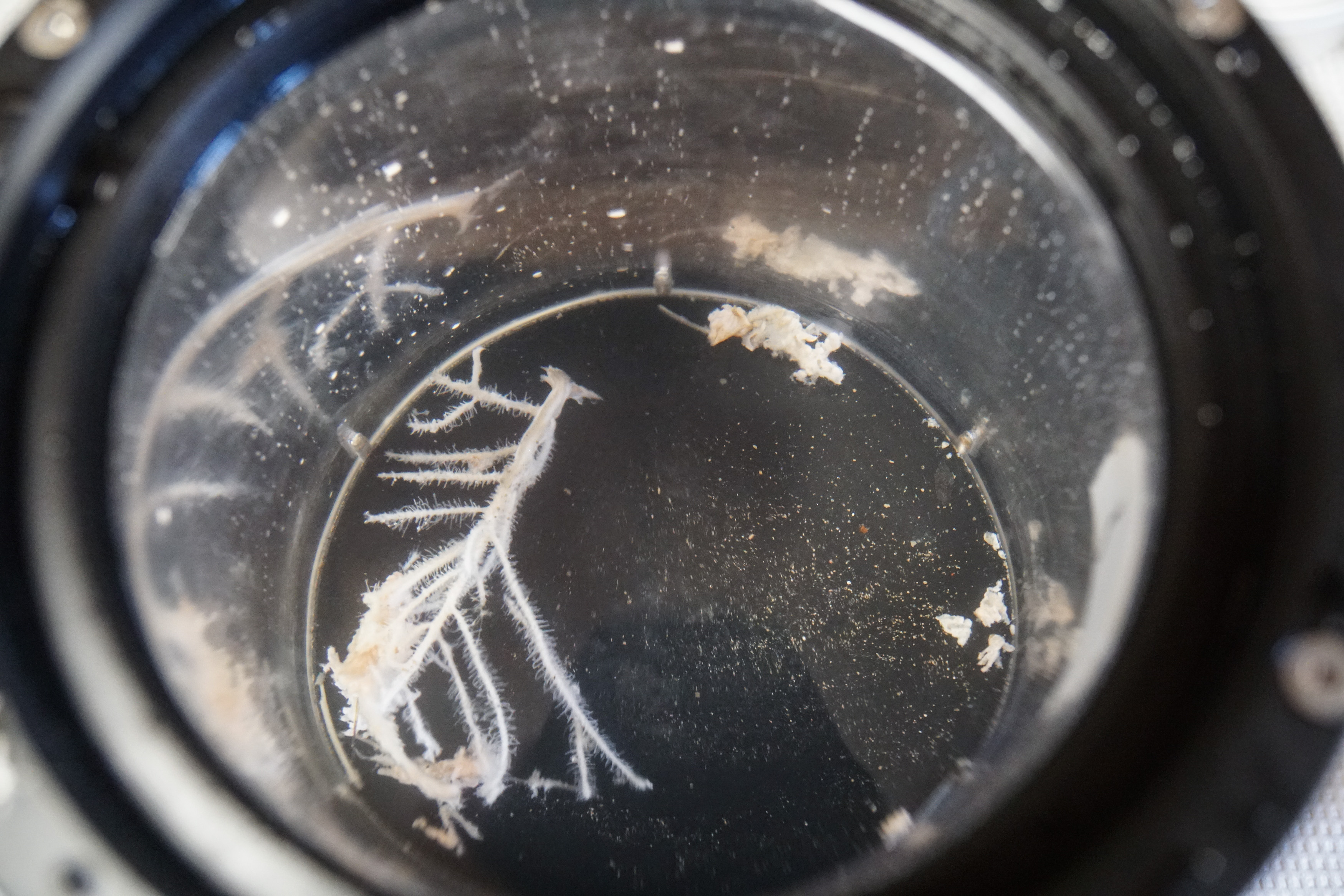 Med spesialutstyr som «armer» og «sprøyter» tok «Ægir 6000» også prøver som ble sendt opp på dekk. Små vekster på vraket ble plukket forsiktig, sjøvann og sedimenter fra havbunnen tatt opp.