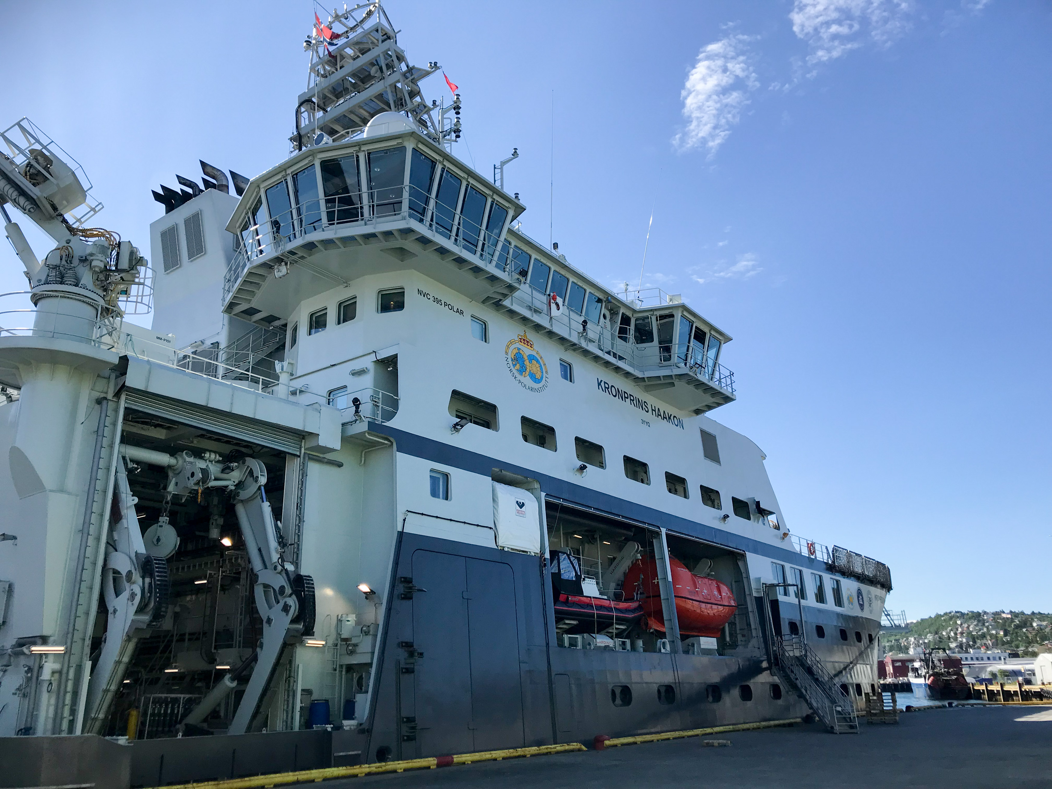 Kronprins Haakon ved kai i Tromsø, kort tid før avgang onsdag. Foto: Kjersti Lie Gabrielsen/HI