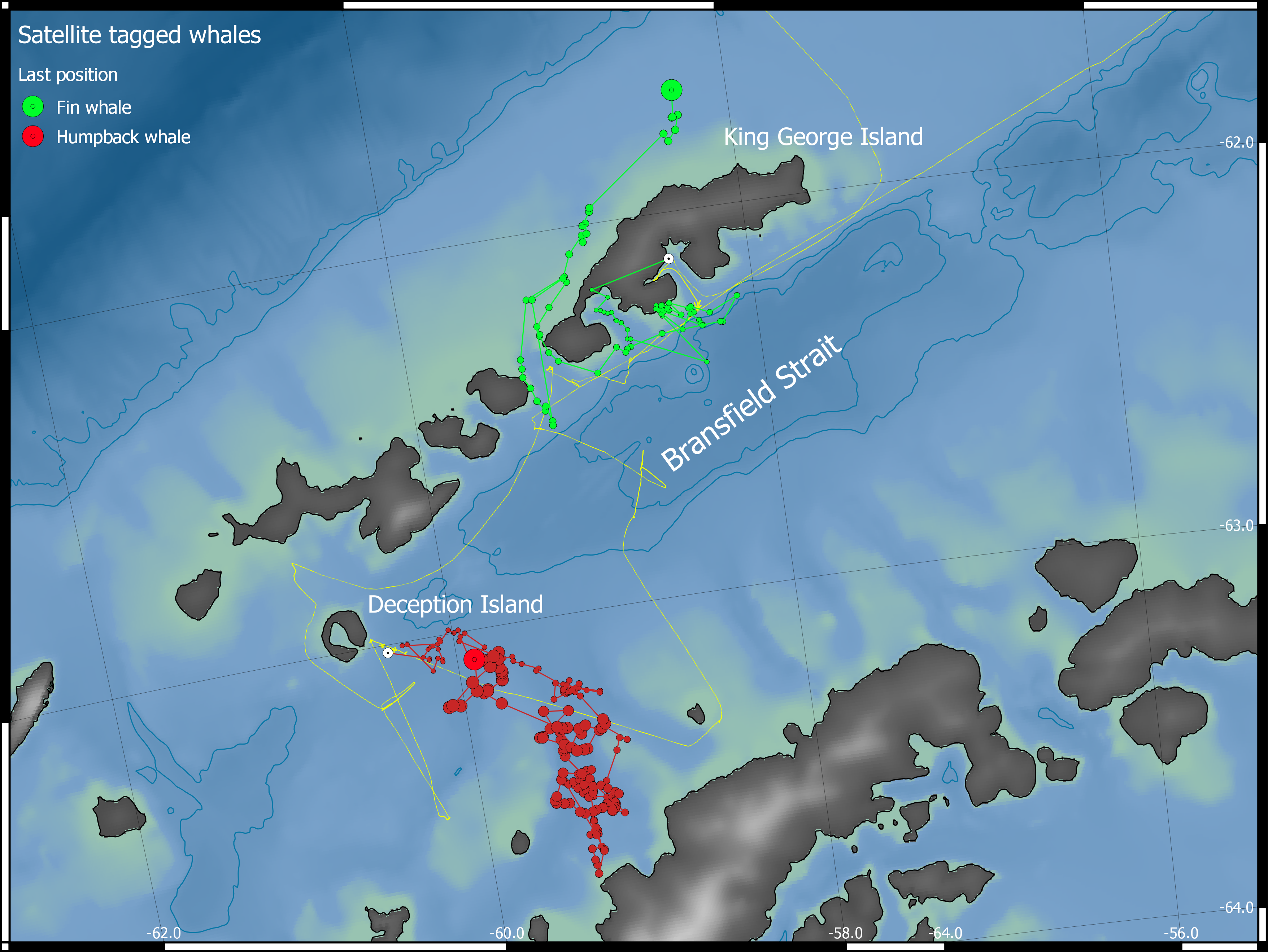 I løpet av toktet ble det festa satellittmerke på tre kvaler, to knølkvaler og en finnkval.